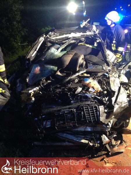 Ein mit hoher Geschwindigkeit fahrender 43-jähriger Lenker eines Audis, fuhr aus bislang unbekannten Gründen auf das Heck eines Anhängers eines vorausfahrenden Lastwagens. Durch die Wucht des Aufpralls wurde der Autofahrer in seinem Fahrzeug eingeklemmt und war vermutlich sofort tot. Er wurde von der Feuerwehr aus dem Fahrzeugwrack geborgen. Weiterhin wurde die Unfallstelle abgesichert und ausgeleuchtet, das weitere Gelände nach einer evtl. zweiten Person abgesucht und auslaufende Flüssigkeiten aufgenommen.