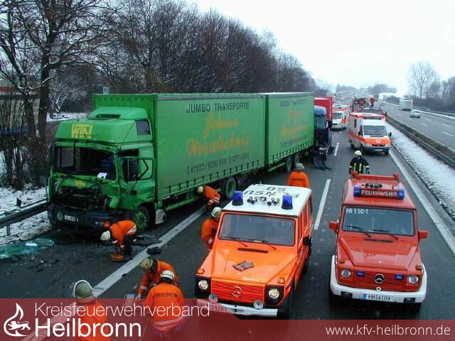 Die Feuerwehren aus Heilbronn und Neckarsulm waren mit sechs Fahrzeugen und 18 Mann an der Unfallstelle. Wegen den Bergungsarbeiten musste die Fahrbahn voll gesperrt werden, weshalb sich der Verkehr auf 12 km staute.