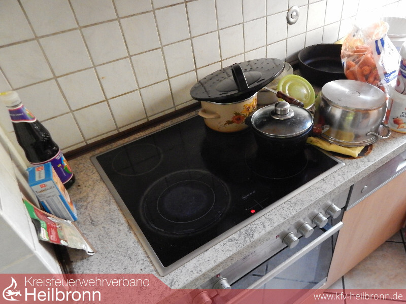 Der bereits vermutete Kochtopf wurde vom Herd genommen und die stark aufgeheizte Herdplatte ausgeschaltet.