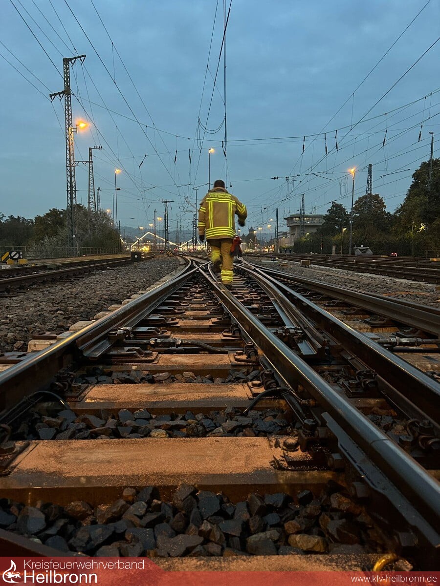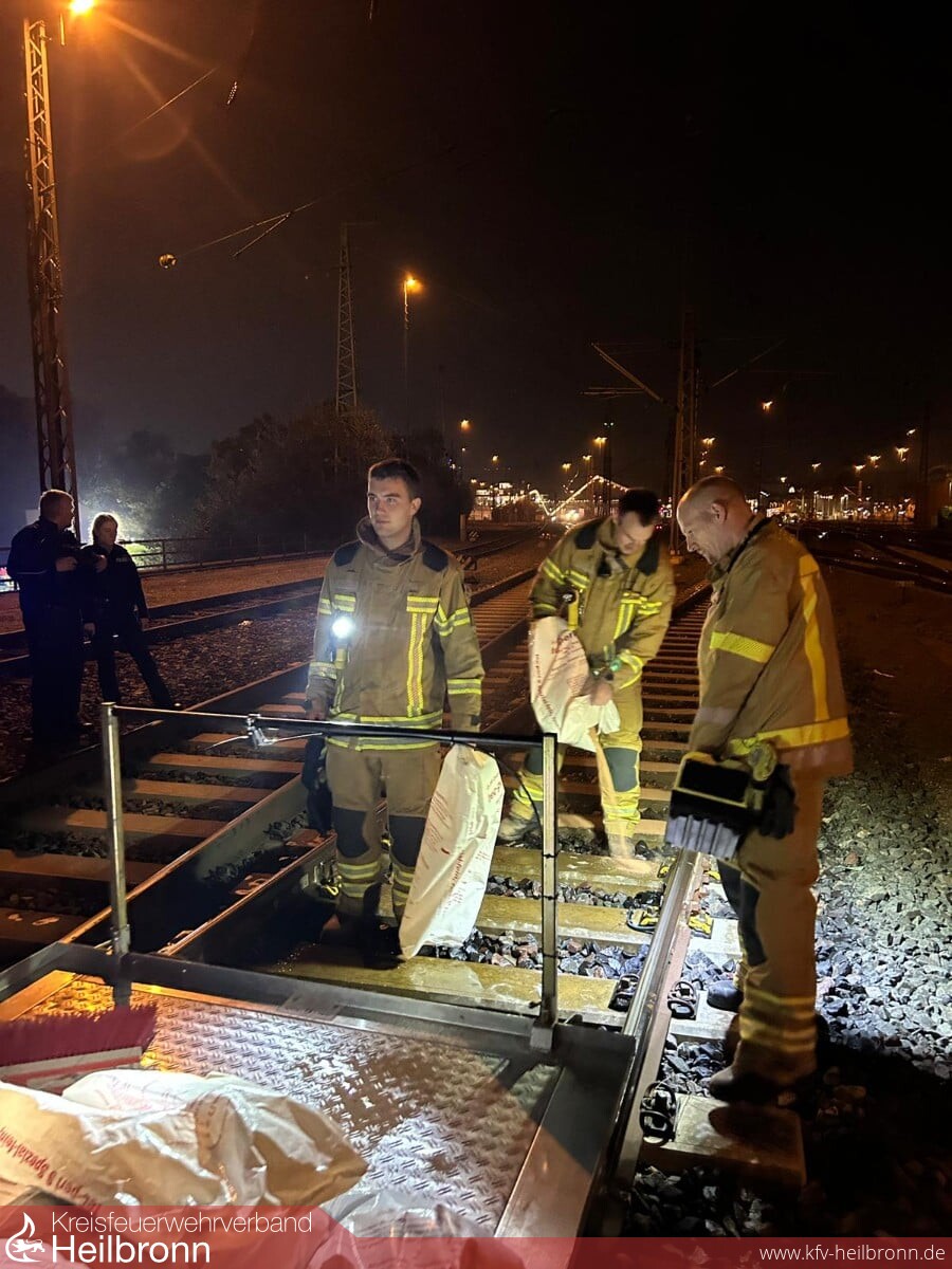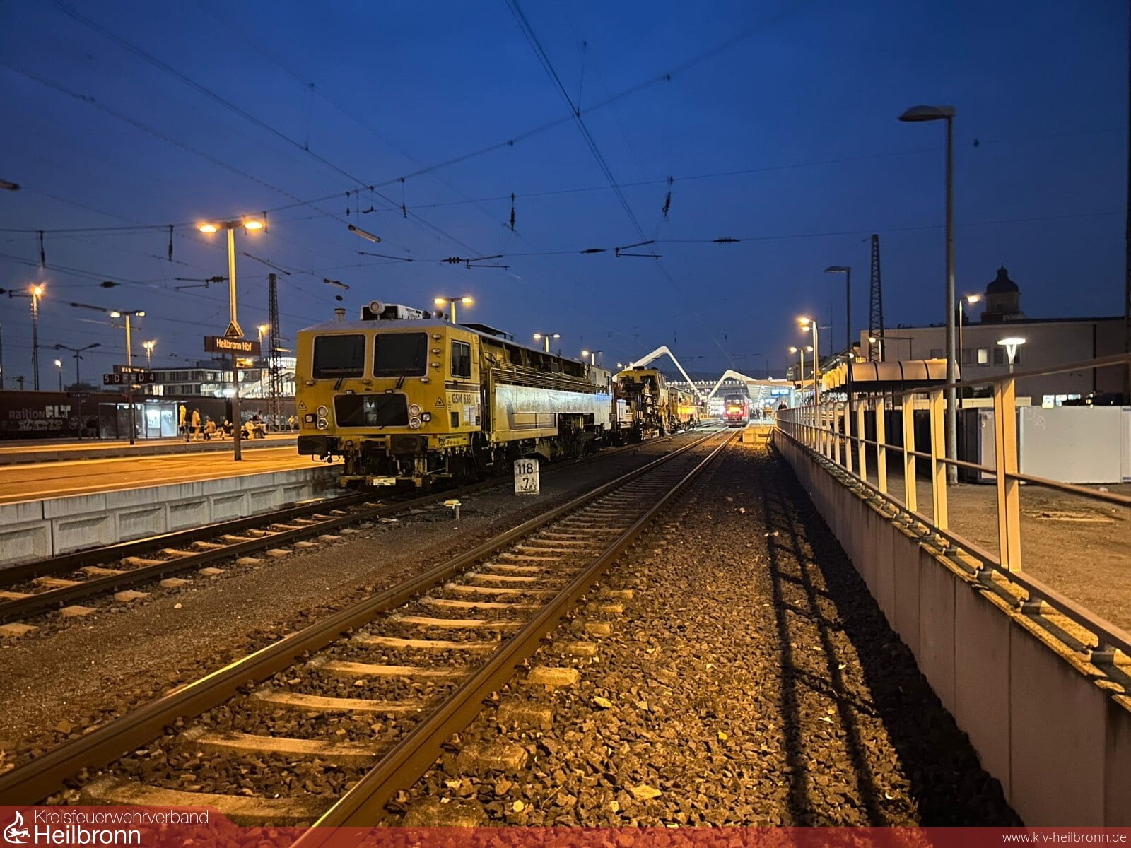 Am gestrigen Freitag wurde die Feuerwehr Heilbronn ab 16 Uhr massiv gefordert. Ein Arbeitszug hatte im Gleisbereich des Bahnhofes eine sogenannte Gefahrenbremsung durchführen müssen. Hierbei platzte eine Hydraulikleitung an dem Fahrzeug und eine größere Mange Hydrauliköl verteilte sich auf einem Streckenbereich von rund 200 Metern. Da hierdurch eine Gefährdung der Umwelt bestand, wurde auch das Umweltamt mit einbezogen und festgelegt, dass eine großflächige Reinigung durchgeführt werden muss. Rund 40 Einsatzkräfte waren somit mehrere Stunden damit beschäftigt das Öl zu beseitigen. Zum Materialtransport kamen sogenannte Loren zum Einsatz. Da auch die Gefahr eines Öleintritts von der Eisenbahnbrücke in den Neckar bestand, mussten spezielle Ölschlängel mit einem Boot eingebracht werden. Die Zugstrecke zwischen Heilbronn und Stuttgart Hauptbahnhof musste über die Dauer der Reinigungsarbeiten gesperrt werden, was zu einigen Ausfällen im Bahnverkehr führte.