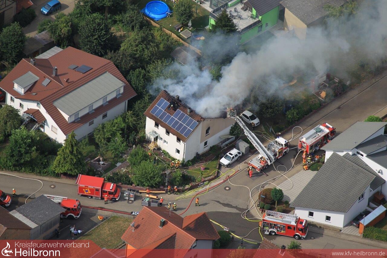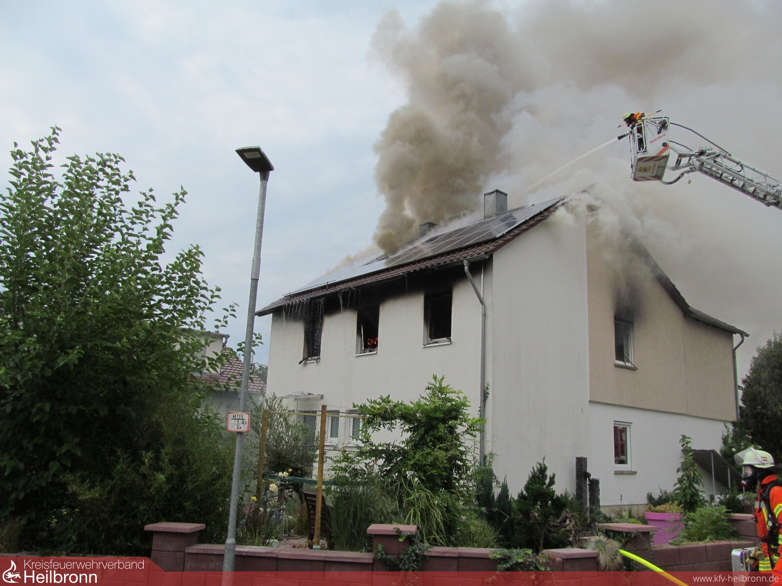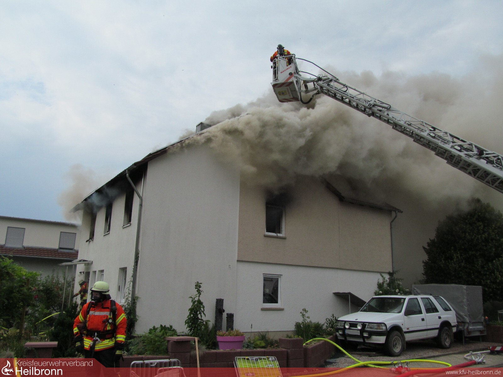 Um 9:13 Uhr wurde die Feuerwehr Bad Rappenau zu einem Wohnungsbrand im Ortsteil Grombach alarmiert. Beim Eintreffen der ersten Kräfte stand das 1. Obergeschoss bereits im Vollbrand. Weiterhin hatte sich das Feuer bereits auf das Dachgeschoss ausgebreitet. Glücklicherweise befanden sich keine Personen mehr im Gebäude. Auf Grund der veränderten Lage, wurden weitere Kräfte nachgefordert. Der Brand wurde mit mehreren Trupps im Innenangriff und über die Drehleiter bekämpft. Durch den massiven Innenangriff konnte das Feuer schnell unter Kontrolle gebracht werden. Teilweise musste Brandschutt aus dem Gebäude geräumt werden, um Glutnester abzulöschen. Während des Einsatzes mussten drei Feuerwehrangehörige wegen Kreislaufproblemen vom Rettungs- bzw. Sanitätsdienst versorgt werden. Die auf dem Dach befindliche Photovoltaikanlage beeinflusste den Einsatzverlauf nicht.