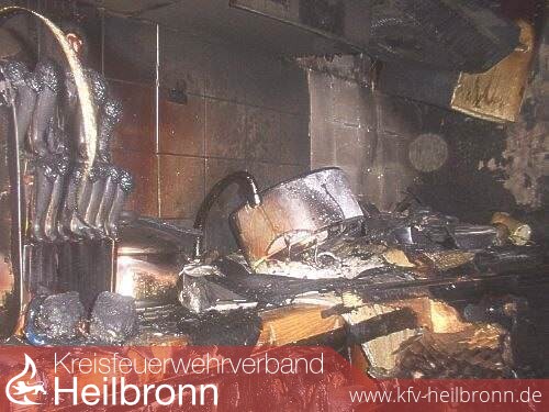 Das Foto zeigt die komplett ausgebrannte Küche.