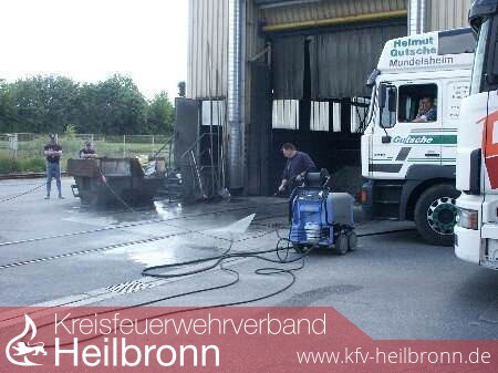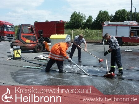 Von der Feuerwehr wurde das Öl mit Bindemittel aufgenommen und der Auslauf des Kanals am Neckar kontrolliert. Wegen der enormen Rutschgefahr durch das Hydrauliköl musste mit dem Waschgerät der Feuerwehr unter Zusatz eines chemischen Mittels eine Nassreinigung durchgeführt werden. Das Schmutzwasser wurde mit einem Sauger aufgenommen und entsorgt.