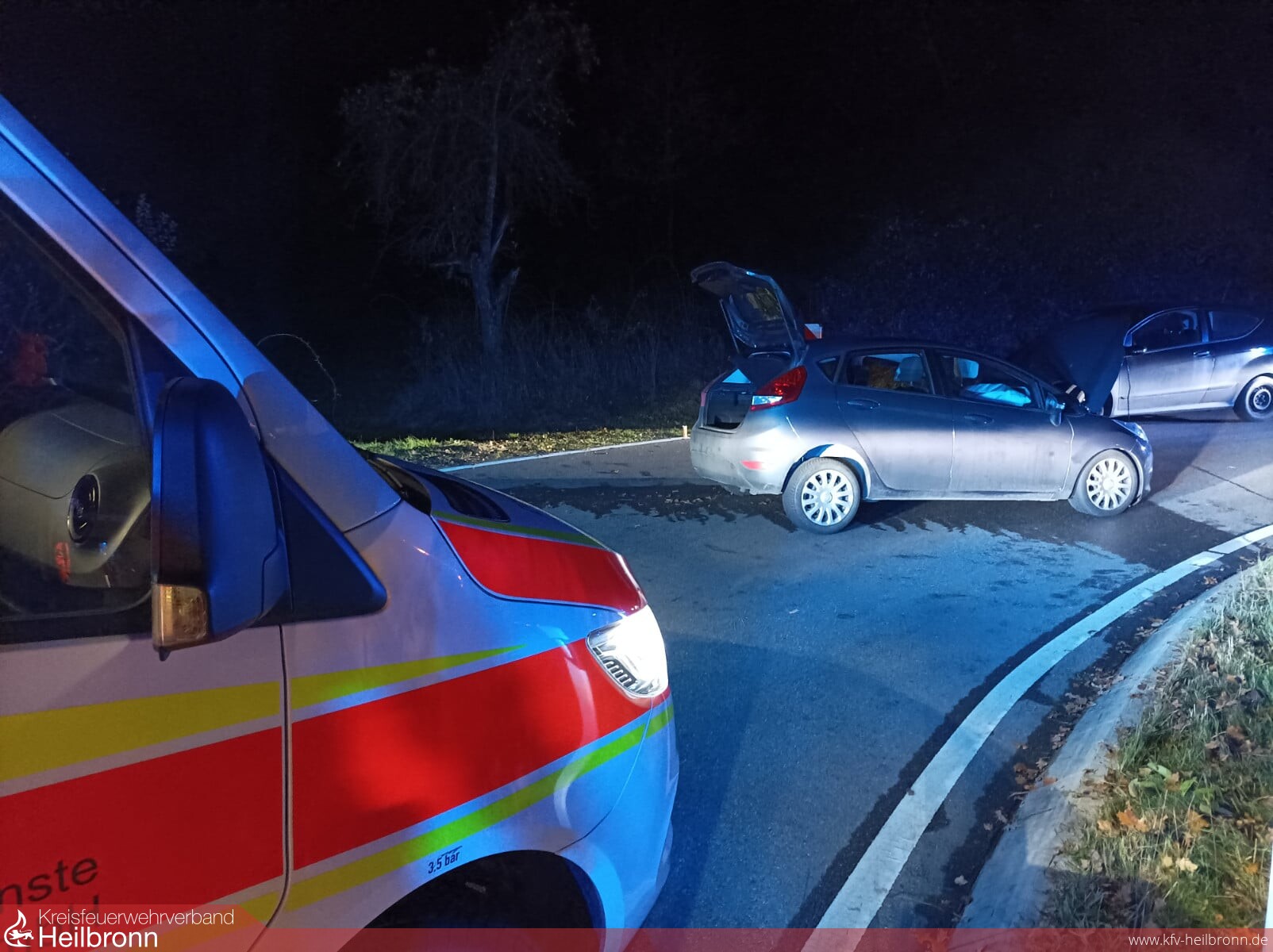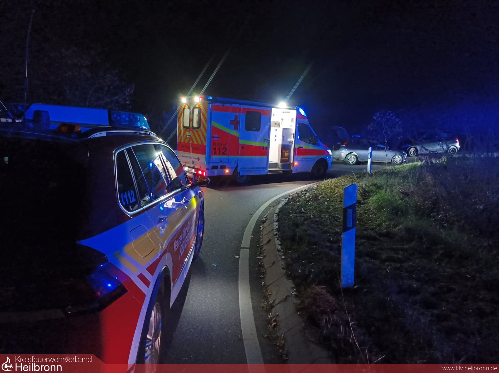 Die Helfer-vor-Ort-Gruppe Neudenau, zwei Rettungswagen und drei Polizeistreifen waren schon vor Ort. Bei den auslaufenden Betriebsstoffen handelte es sich um Scheibenputzwasser, daher waren hier keine Maßnahmen der Feuerwehr erforderlich. Zur Sicherheit wurde die Batterie vom Unfallfahrzeug vom Bordnetz getrennt. Anschließend konnte der Gerätewagen-Logistik, der direkt von der Abteilungsübung angefahren war, einrücken.