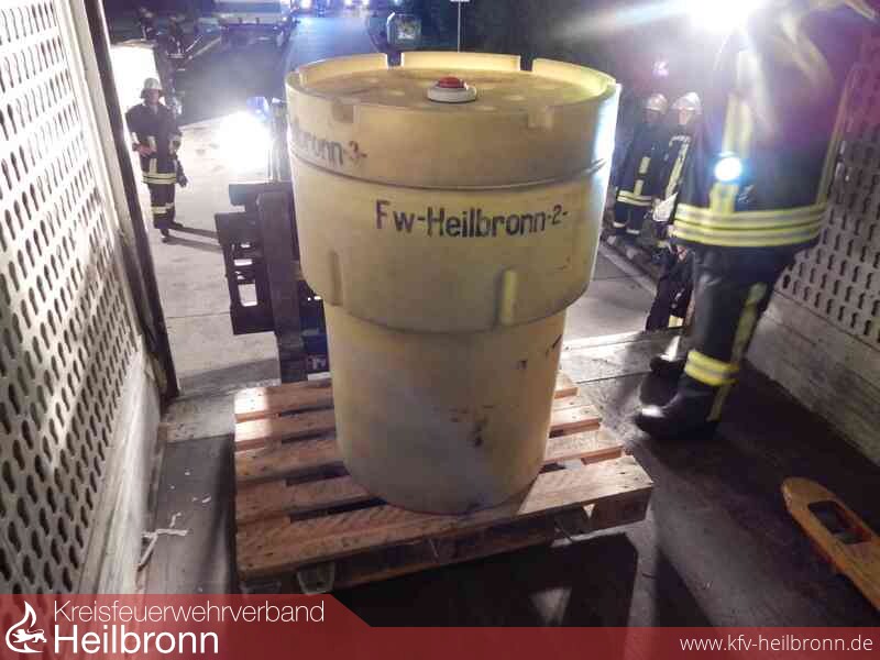 Hierbei wurde festgestellt, dass es sich bei der Flüssigkeit um ein Konservierungswachs handelte. Ein weiteres Auslaufen des Wachses konnte durch Drehen des 200 Liter Fasses verhindert werden.