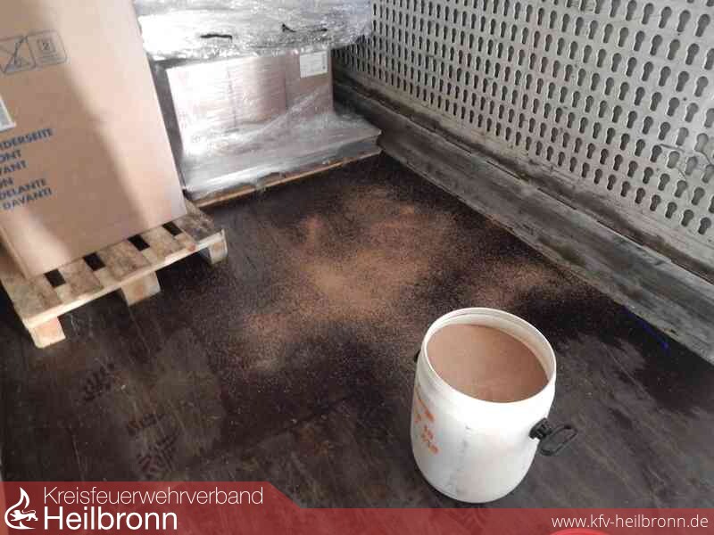 Sofort stoppte er sein Fahrzeug und konnte das Feuer mit einem Pulverlöscher löschen. Hierbei bemerkte er eine von der Wechselbrücke auf den Auspuff tropfende Flüssigkeit und alarmierte die Feuerwehr.