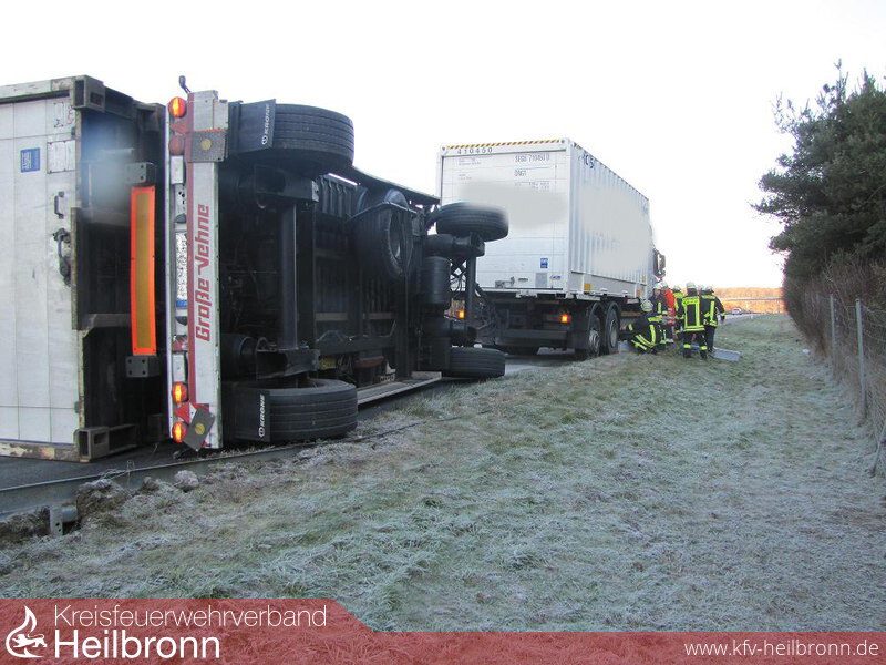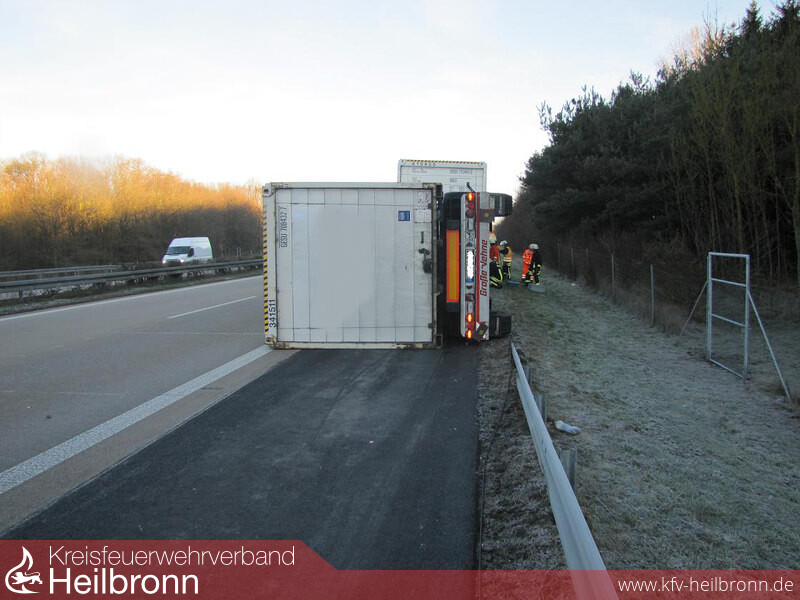 Ein LKW war Richtung Würzburg, kurz vor der Ausfahrt Osterburken ins schleudern geraten und auf die Leitplanke gefahren, wodurch der Anhänger umgekippt ist.