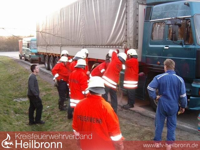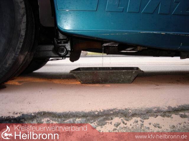 Ein tschechischer LKW hatte seinen 400 Liter Diesel fassenden Tank aufgerissen, der Inhalt betrug noch 300 Liter und nicht wie irrtümlich gemeldet 3000 Liter. Es wurde ein Serviceunternehmen angefordert um den Tankinhalt abzupumpen. Das TLF der FF Möckmühl übernahm so lange den Brandschutz, die weiteren eingetroffenen Kräfte verließen die Einsatzstelle. Anschließend wurde der mitten in der Einfahrt stehende LKW auf den Parkplatz geschleppt, der Tank ausgepumpt und abgebaut. Ca. 10 Liter Diesel sind auf die Fahrbahn geraten, diese wurden von der FF Möckmühl aufgenommen und es wurde Ölbinder aufgetragen.