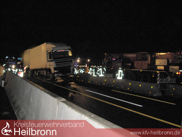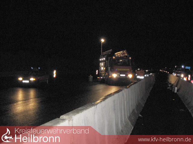 Vermutlich durch einen Schwertransporter wurden die Betonabtrennungen zwischen den Richtungsfahrbahnen auf der A6 verschoben. Ein anderer LKW konnte nicht mehr rechtzeitig reagieren und durchbrach auf mehrere Meter Länge die Betonbegrenzung. Dabei beschädigte er sich den Unterboden und ein Tank . Der Fahrer musste nicht befreit werden.