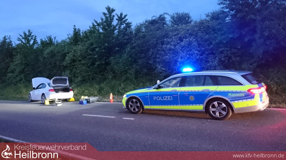 In den frühen Morgenstunden wurde die Freiwillige Feuerwehr Nordheim am Pfingstmontag von der Polizei zu auslaufenden Betriebsmitteln nach einem Verkehrsunfall gerufen. Auf der L1105 in Richtung Lauffen kam ein BMW von der Fahrbahn ab und blieb mit einem beschädigtem Kraftstofftank liegen.
