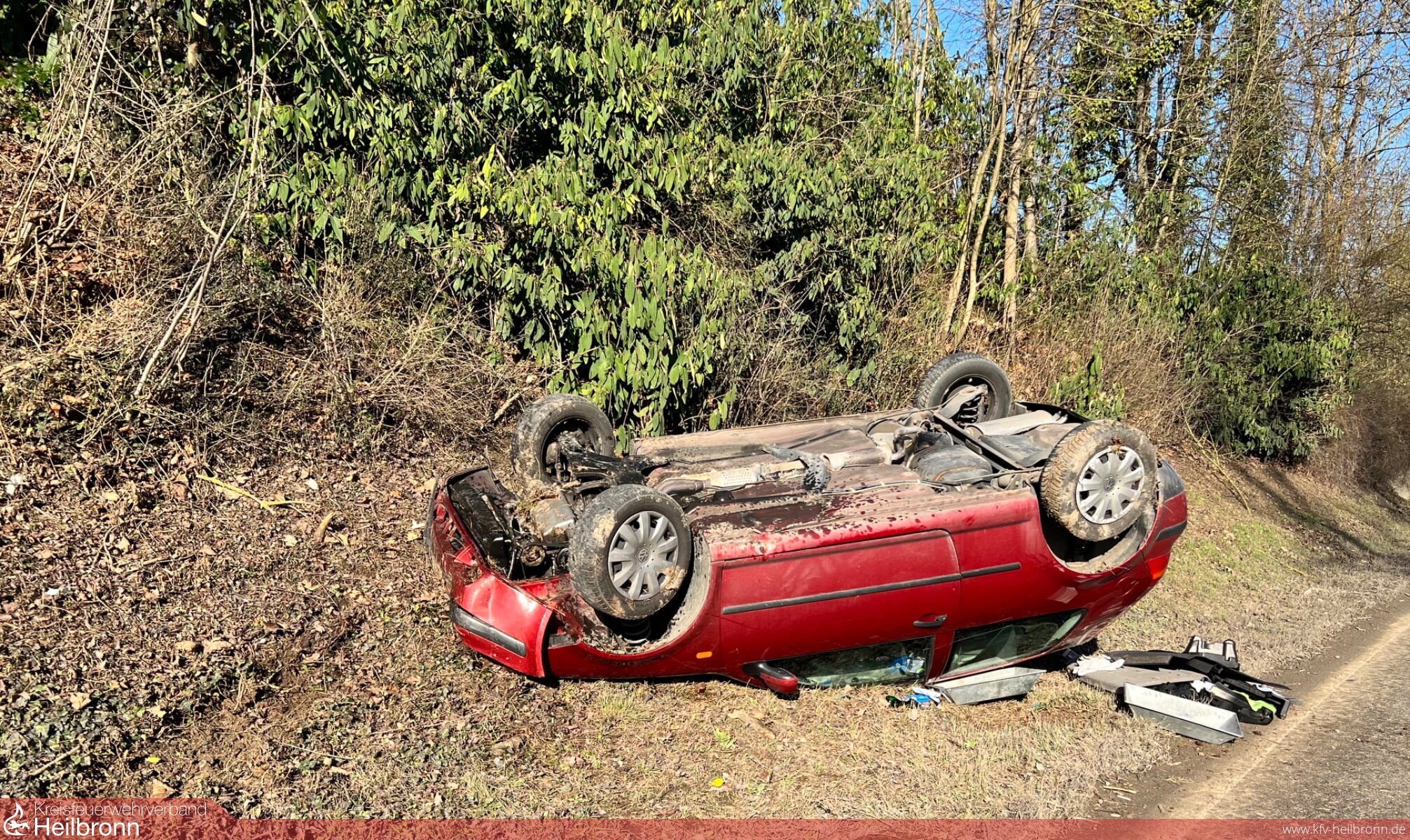 Nach dem der Brandschutz sichergestellt war stellte die Feuerwehr Talheim das Fahrzeug wieder auf die Räder und nahm die austretenden Flüssigkeiten auf und klemmte die Batterie ab. Das verunfallte Fahrzeug wurde vom Abschleppunternehmer aufgeladen, die Straße abschließend gereinigt. Abschließend wurde die Einsatzstelle der Polizei übergeben.