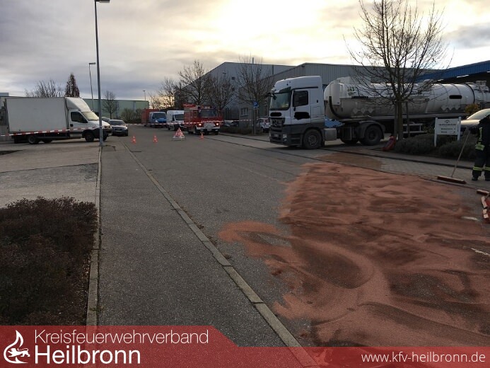 Mit dem Alarmierungsstichwort „ Auslaufender Kraftstoff/Öl “ wurde die Feuerwehr Talheim am 22.12.2015 um 08:21Uhr ins Talheimer Industriegebiet alarmiert.