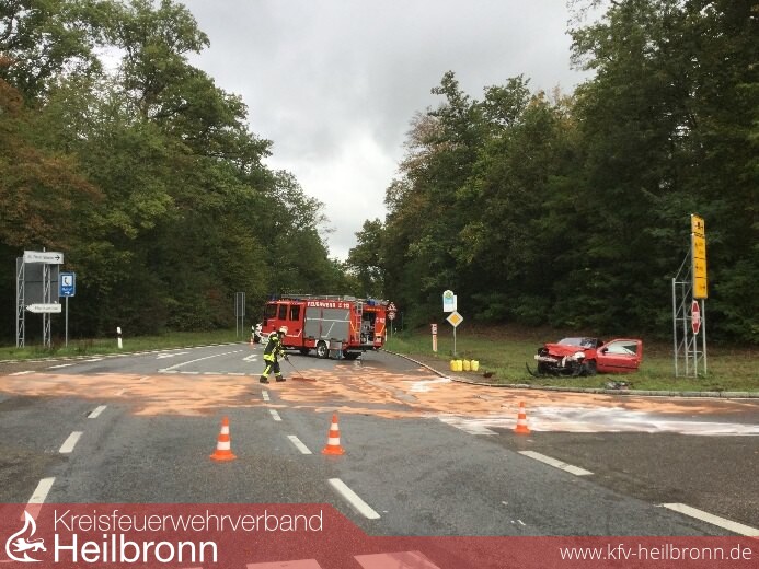 Die Tätigkeit der Feuerwehr Talheim beschränkte sich auf das Abklemmen der Fahrzeugbatterien und Aufnahme der ausgelaufenen Betriebsmittel. Hierzu musste die Kreuzung kurzzeitig voll gesperrt werden.