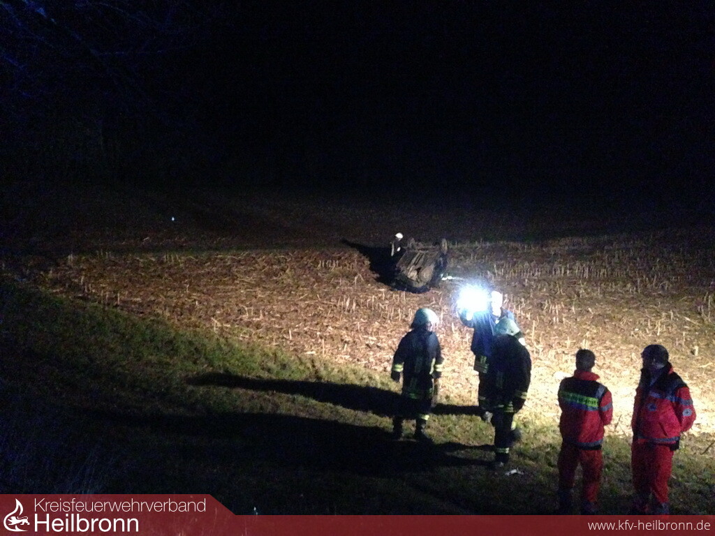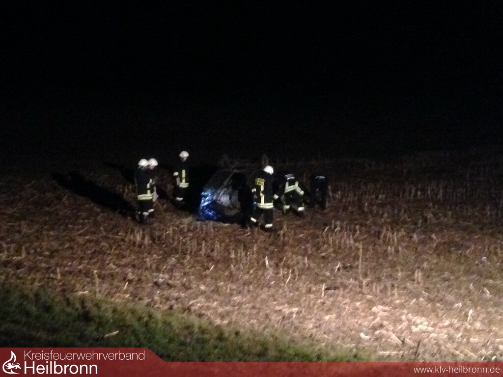 Ein PKW kam dort von der Fahrbahn, touchierte einen Baum, stürzte eine Böschung hinab und überchlug sich mehrfach. An der Unfallstelle wurde eine Person angetroffen, welche mehrmals behauptetete den VU schlafend auf der Rücksitzbank erlebt zu haben und nicht der Fahrer gewesen wäre.