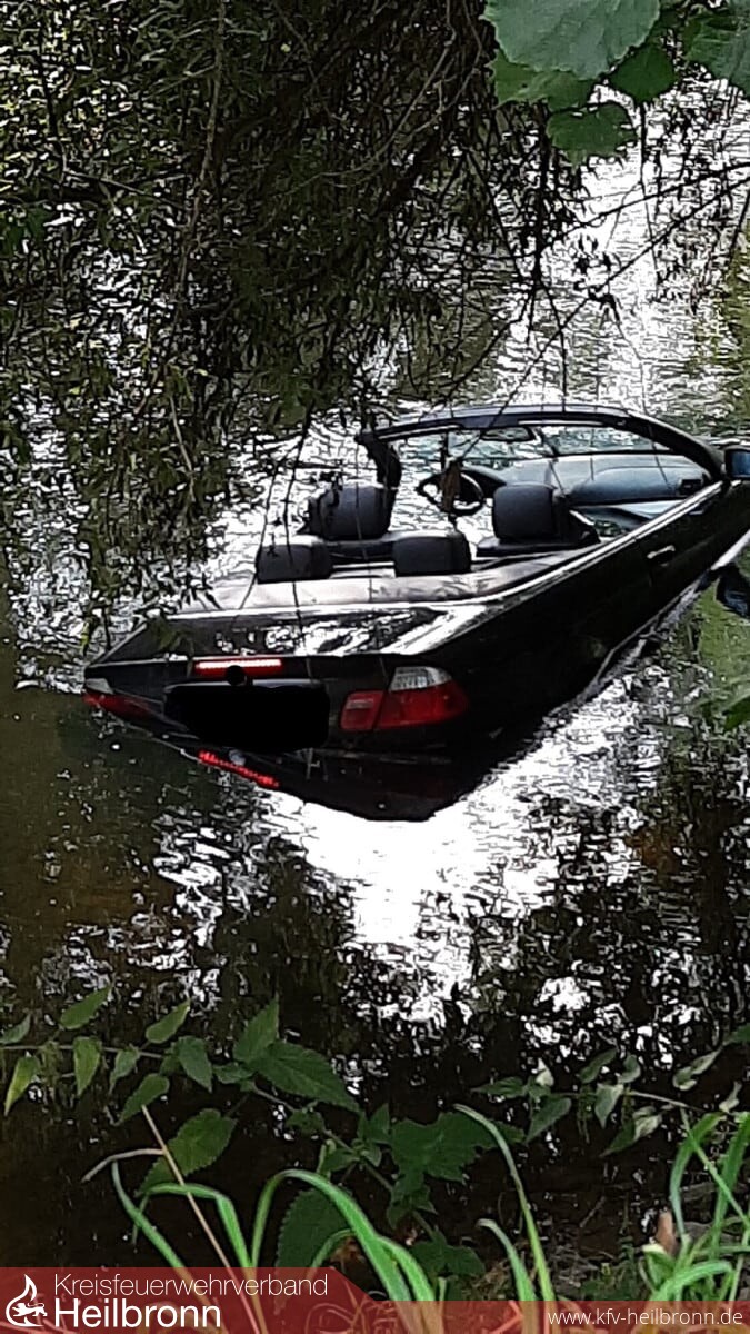 Am Samstag Mittag wurde die Feuerwehr Widdern zu einem Fahrzeug in der Jagst gerufen.