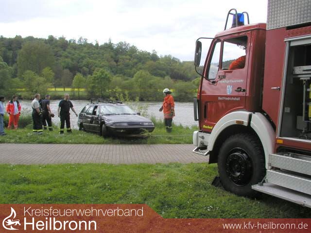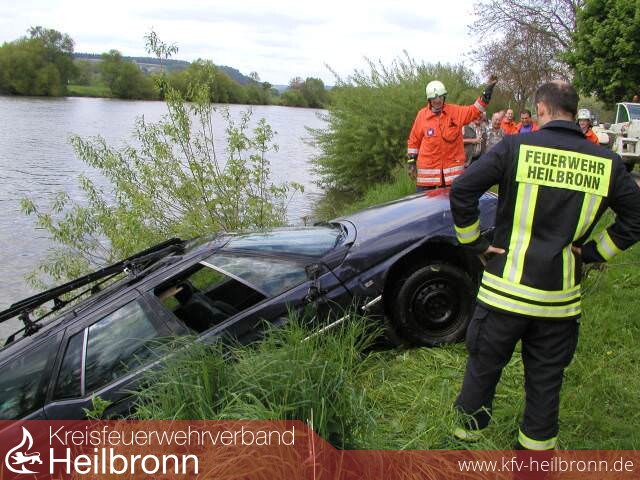 Bevor der Citroen unterging trieb er ca. 40 Meter weiter. Zwei Taucher der Berufsfeuerwehr Heilbronn fanden ihn ca. 15 Mter vom Ufer entfernt in 4,30 Meter Tiefe auf dem Dach liegend. Mit einem Rüstwagen der Feuerwehr Bad Friedrichshall wurde das Auto aus dem Neckar gezogen. Die Feuerwehr Offenau sperrte die Einsatzstelle wärend den Bergungsarbeiten ab. Durch die rasche Bergung konnte eine Verschmutzung des Neckars durch Öl bzw. Kraftstoff verhindert werden.