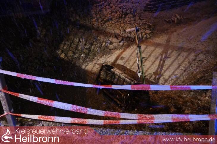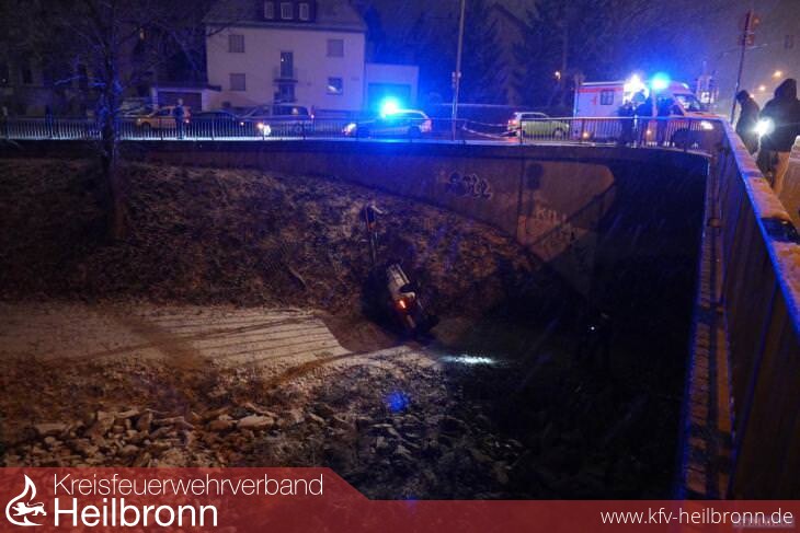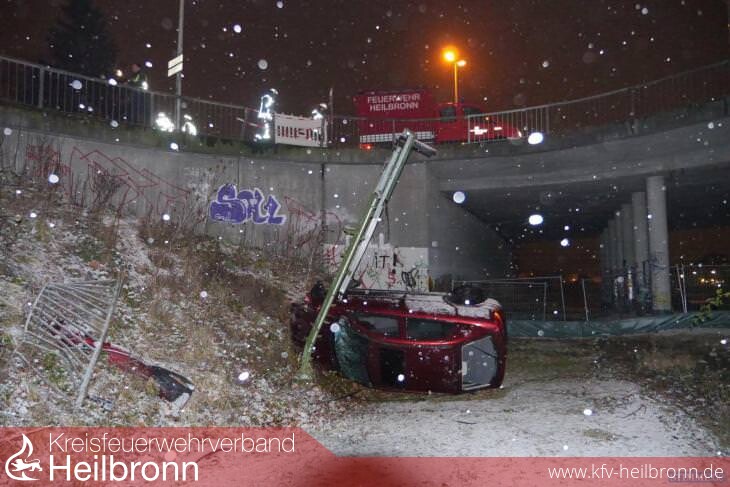 Ein 19-jähriger Opelfahrer versuchte eine 47-jährige VW-Fahrerin rechts in einer Bushaltebucht zu überholen. Da die VW-Fahrerin zwischenzeitlich nach rechts abbiegen wollte, kam es zu einem Zusammenstoß. Der Opel wurde abgewiesen, durchbrach das Stahlgeländer der Stuttgarter Brücke und stürzte anschließend rund acht Meter in die Tiefe.