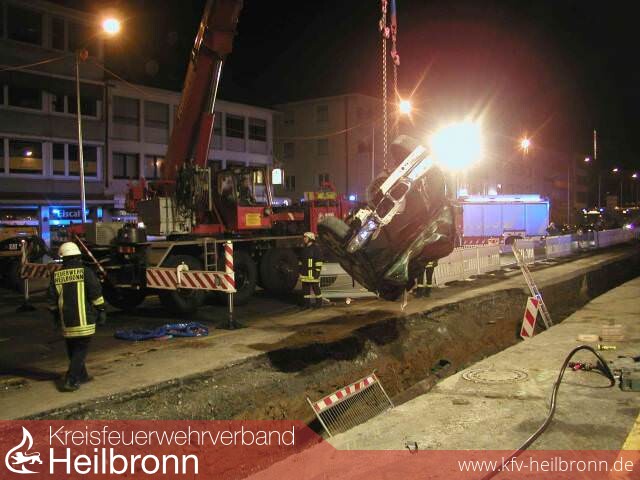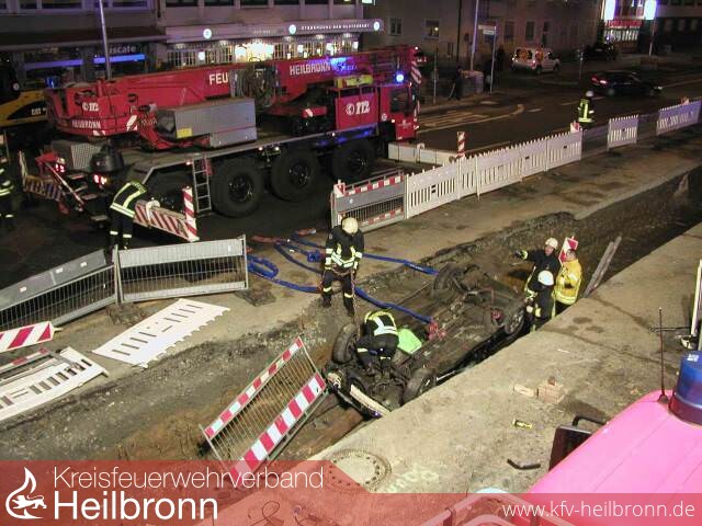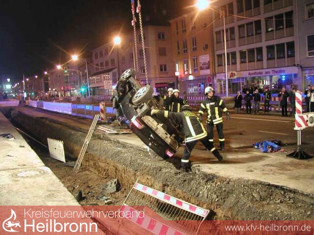 Der Fahrer des 3er BMW verlor auf Höhe des Shoppinghauses die Kontrolle über sein Fahrzeug. Der Wagen kam ins Schleudern, durchbrach einen Bauzaun und landete schließlich auf dem Dach liegend in einer ca. zwei Meter tiefen Baugrube.