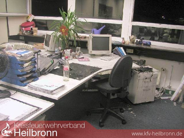 Vermutlich durch ein elektrisches Gerät auf einem Rollcontainer gerieten Teile der Büroeinrichtung eines Werbeverlages in der Karl-Wüst-Straße in Brand.