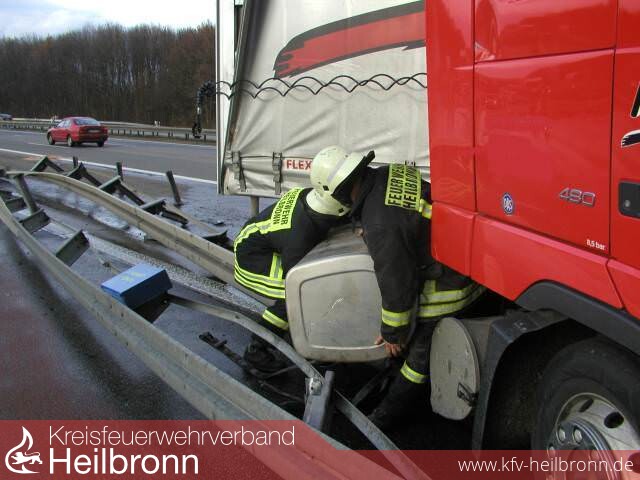 Durch die Heilbronner Feuerwehr, welche mit fünf Fahrzeugen und 12 Mann im Einsatz war, konnte der ausgelaufene Kraftstoff mittels Bindemittel aufgenommen werden. Ein weiterer Kraftstofftank wurde abgedichtet.
