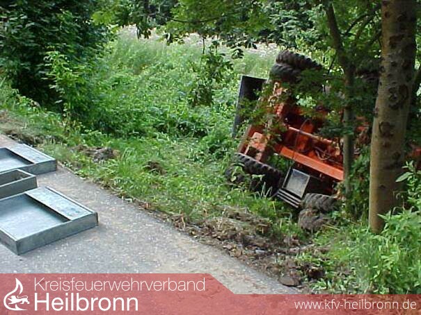 Kurz vor 16.00 Uhr wurde die FFW Möckmühl zu einem Einsatz auf dem Jagsttalradweg zwischen Ruchsen und Widdern gerufen. Dort sei ein Bagger umgestürzt und es laufe Öl aus. Auf Grund dieses Alarmstichwortes rückte der VRW und der RW 2 zur Einsatzstelle ab.