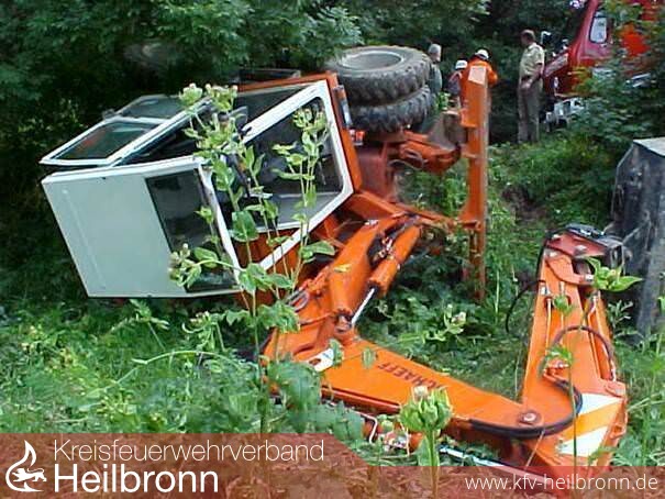 Erst mit Unterstützung des inzwischen eingetroffenen Baggers war es in Zusammenarbeit mit der Winde möglich, den verunfallten Bagger anschließend wieder aufzustellen. Die Höhe des entstandenen Schadens kann nicht abschätzt werden.