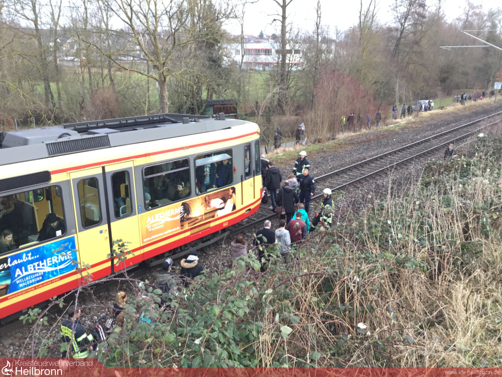 Um 8:42 Uhr am Montagmorgen wurde die Feuerwehr Leingarten mit dem Einsatzstichwort „Bahnunfall“ alarmiert. Auf der Bahnstrecke in Richtung Schwaigern kam es zu einem Personenunfall mit einer Stadtbahn. Gemäß der landkreisweiten Alarm- und Ausrückeordnung wurden darüber hinaus die Feuerwehren aus Lauffen, Heilbronn und Bad Friedrichshall alarmiert. Vor Ort stellte sich jedoch schnell heraus, dass der Einsatz der Feuerwehr nicht notwendig sein würde. Die externen Feuerwehren konnten umgehend zurückgeschickt werden. Die Einsatzkräfte aus Leingarten verblieben noch bis etwa 12 Uhr an der Einsatzstelle. Die Fahrgäste wurden zu Fuß, später mit Bussen zur nächsten Haltestelle verbracht. Bis zur endgültigen Freigabe der Bahnstrecke unterstützten die Feuerwehrangehörigen die Polizei und AVG bei der Abwicklung des Unfalles.