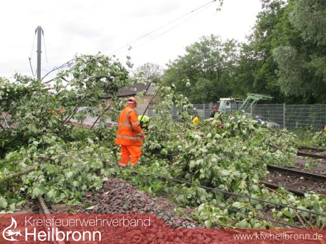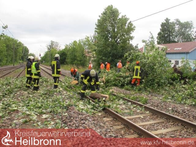 Sturmböen haben kurz nach dem Leingartener Bahnhof einen großen Baum am Rand der S-Bahn-Trasse Karlsruhe / Heilbronn entwurzelt und zum Umfallen gebracht. Dabei fiel der Baum direkt auf die Oberleitungen und die Gleise. Der S-Bahn Verkehr war hierdurch sofort blockiert; die Oberleitungen auf beiden Fahrstrecken in diesem Abschnitt wurden zerstört. Teile der Oberleitung wirbelten dadurch umher und rissen einen Zaun, der das unberechtigte Überschreiten der Gleise verhindern soll, aus der Verankerung.