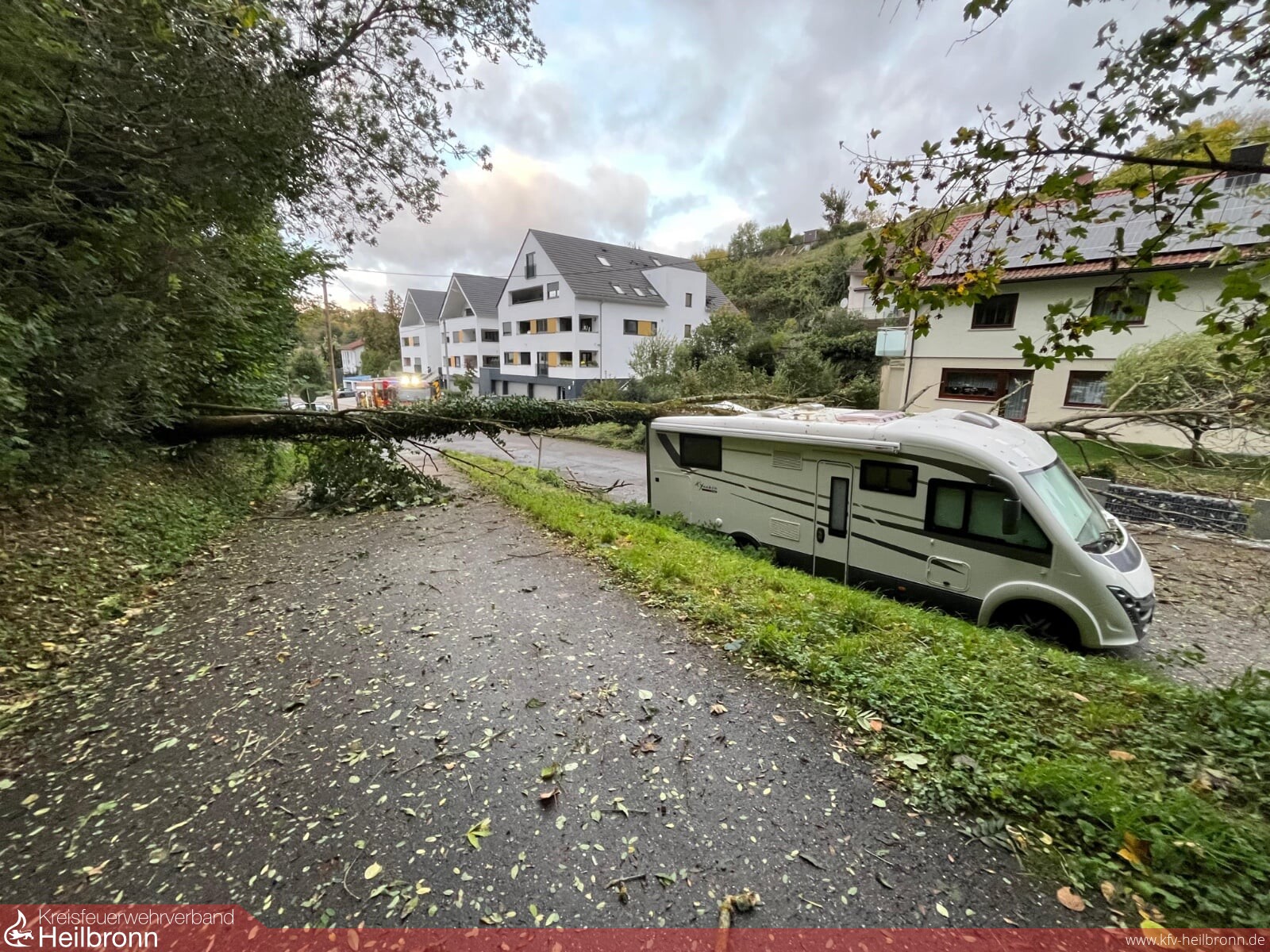Am frühen Donnerstagmorgen wurde die Feuerwehr Talheim in die Soultzmatterstraße zu einem Windbruch alarmiert. Infolge des anhaltenden starken Windes stürzte ein Baum auf ein dort abgestelltes Wohnmobil.