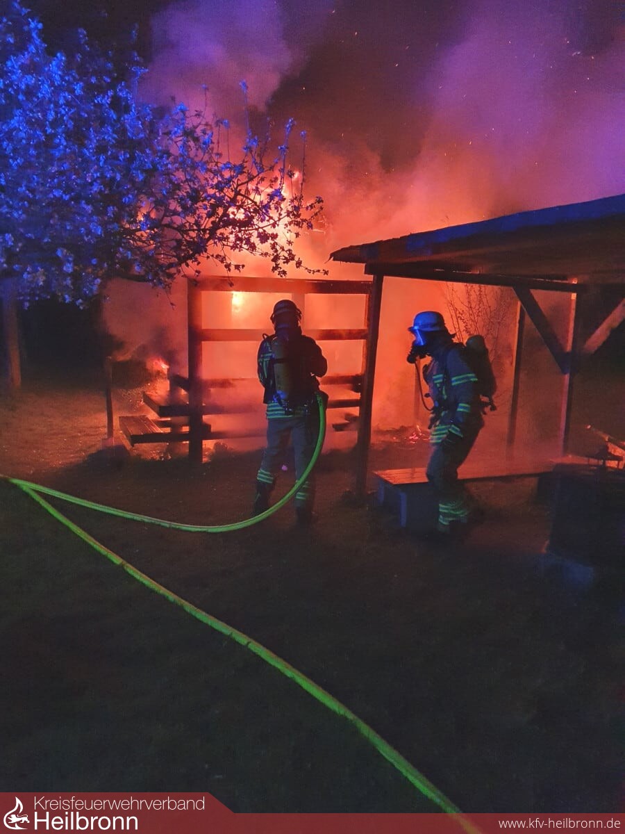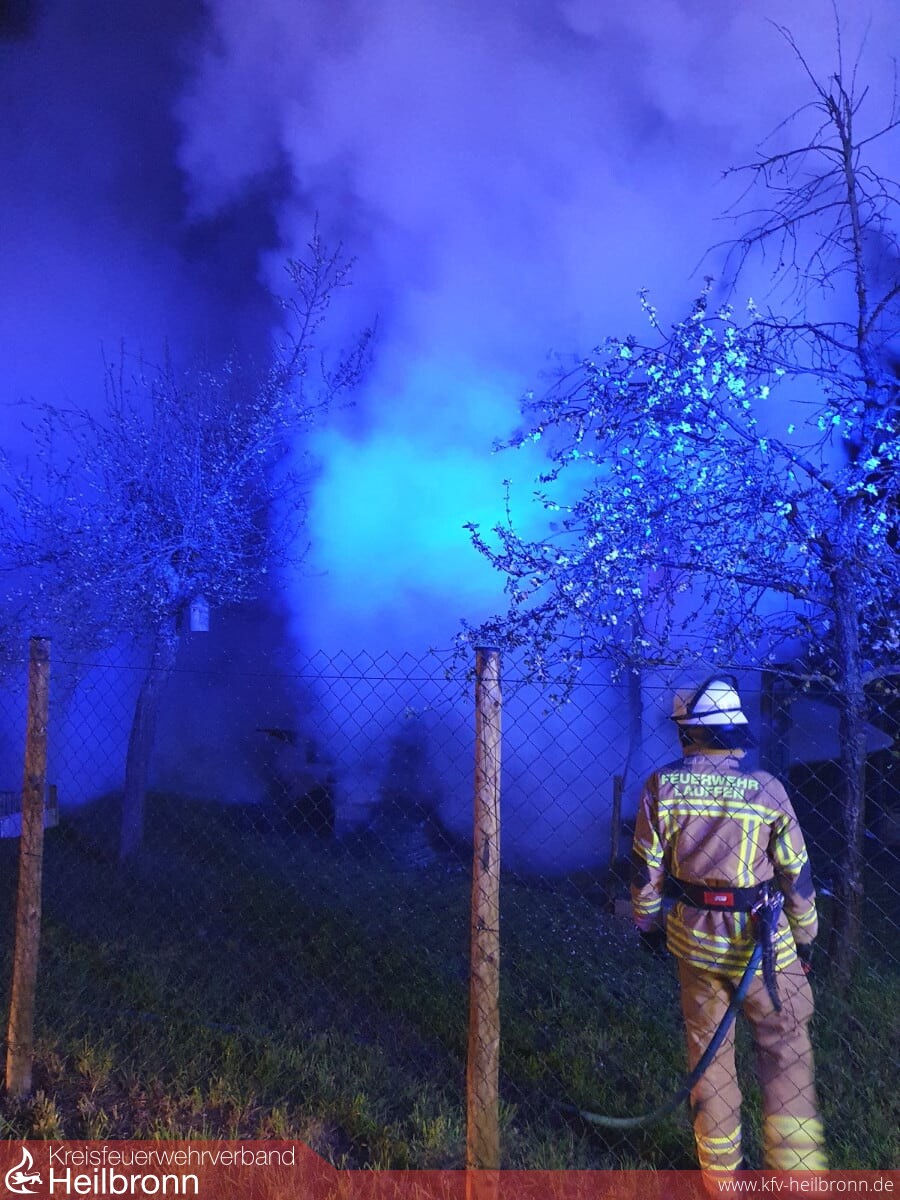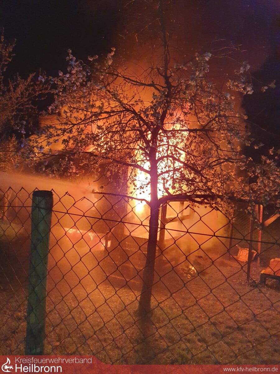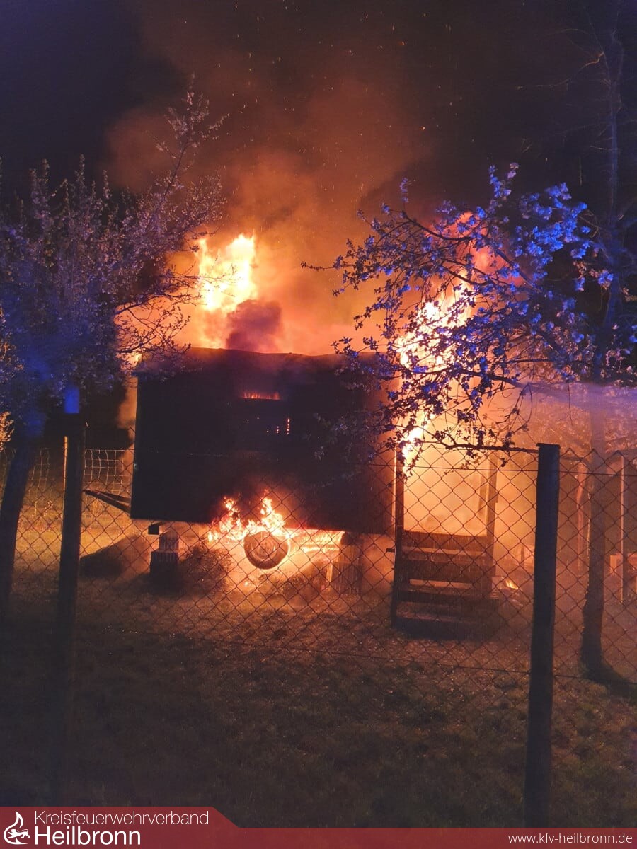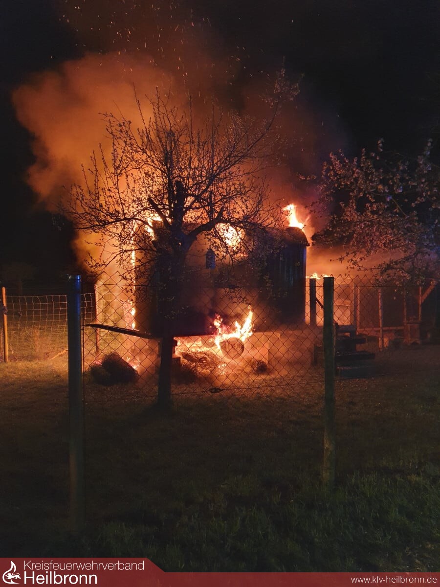 Beim Eintreffen an der etwa 300 Meter vom Feuerwehrhaus gelegenen Einsatzstelle, konnte vom Einsatzleiter ein aufgebockter Bauwagen auf einem eingezäunten Gartengrundstück festgestellt werden, welcher bereits in voller Ausdehnung brannte.