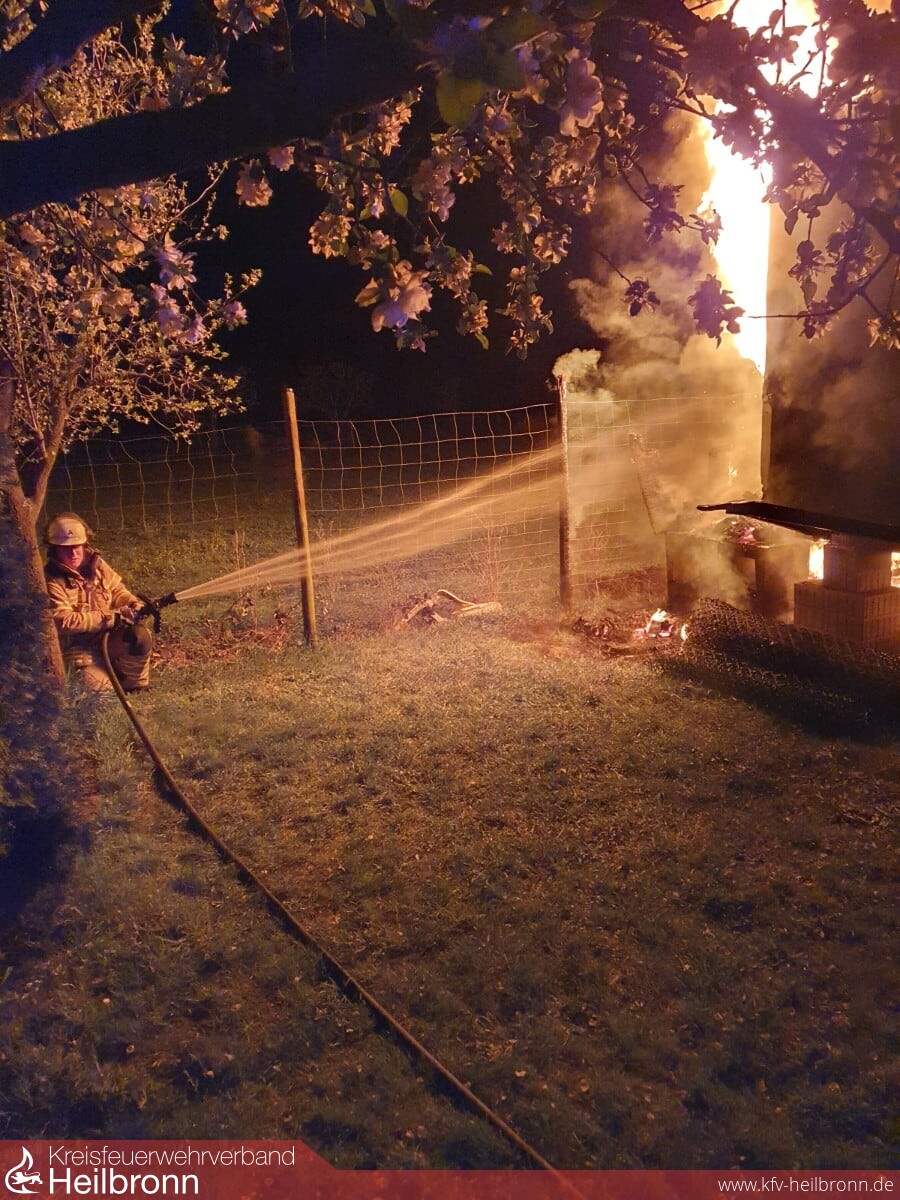 Weil ein auf der L 1103 vorbeifahrender Angler einen großen Feuerschein auf einem Grundstück an der Zaber wahrgenommen hat, verständigte dieser über Euronotruf 112 die Feuerwehr.