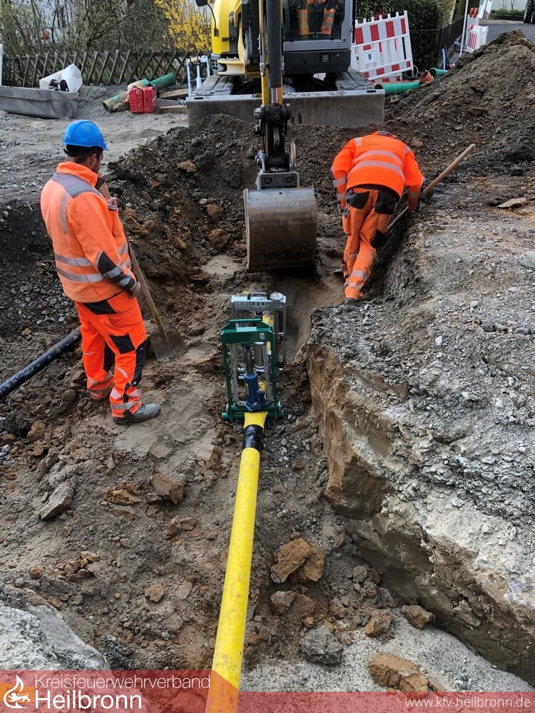Zu einer Gasausströmung wurde die Abteilung Möckmühl in den Brandhölzlesweg gerufen. Bei Baggerarbeiten im Strassenbereich wurde eine Gasleitung entsprechend beschädigt. Die Einsatzkräfte stellten den Brandschutz sicher, belüfteten die Baugrube und kontrollierten mit dem Landkreis Gerätewagen-Messtechnik die umliegenden Gebäude. Ein Störungstrupp der HNVG stellte die Gaszufuhr ab und tauschte das beschädigte Rohr aus.