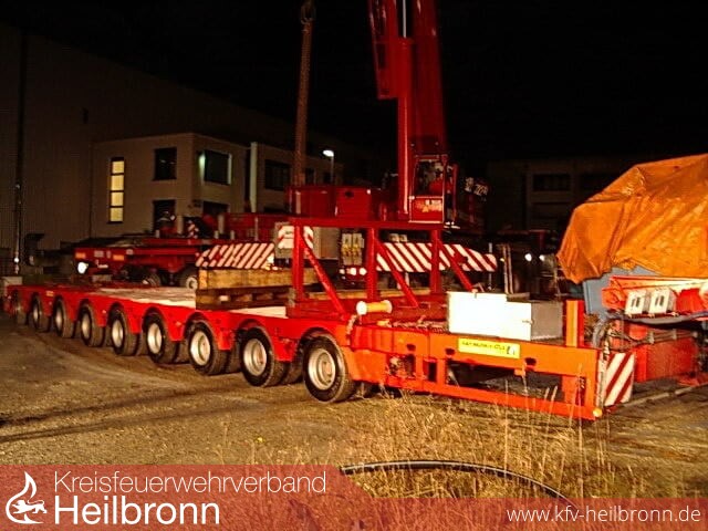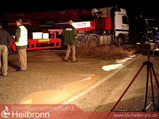 Beim anheben einer Presse stellte sich heraus, dass diese nicht vollständig entleert wurde und dadurch ca. 200 Liter Wasser/Ölgemisch ausliefen. Schätzungsweise 50 Liter davon waren Hydrauliköl, welches sich über den Tieflader, den befestigten Parkplatz sowie die angrenzende Nordstraße ergoss.
