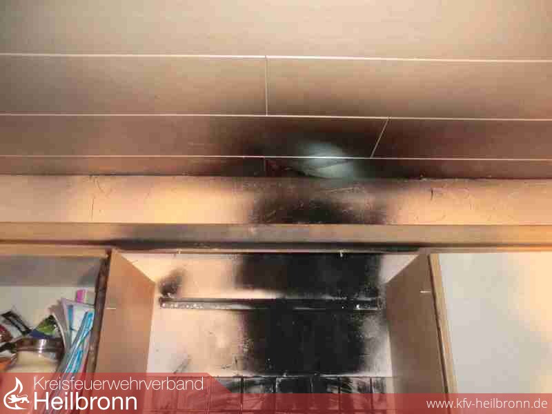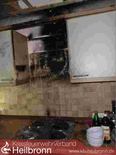 In einer Einliegerwohnung im Untergeschoss eines freistehenden Einfamilienhauses wurde ein Topf mit heißem Öl vergessen, der sich in Folge entzündete. Der Brand weitete sich auf einen Oberschrank aus. Ein Feuerlöscher der Bewohner dämmte das Feuer bedingt ein. Die Feuerwehr führte Nachlöscharbeiten unter Atemschutz mit einem Kleinlöschgerät durch. Der Wohnbereich wurde mit einem Belüftungsgerät entraucht, Teile der Deckenverkleidung zur Kontrolle geöffnet. Zur Kontrolle vom weiteren Wohnraum kam ein zweiter Trupp unter Atemschutz zum Einsatz. Die Kräfte der Feuerwehr Obersulm konnten nach kurzer Bereitstellung ohne weitere Tätigkeit aus dem Einsatz entlassen werden.