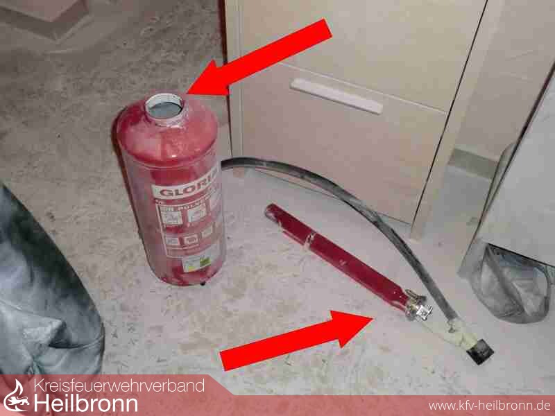 Der Feuerlöscher war zuletzt im Jahr 2005 von einer Fachfirma geprüft worden. Die Ursache für den Beinaheunfall kann nicht nachvollzogen werden. Ob es an schadhaften Bauteilen, mangelnde Wartung oder Handhabung / Lagerung lag, ist reine Spekulation.