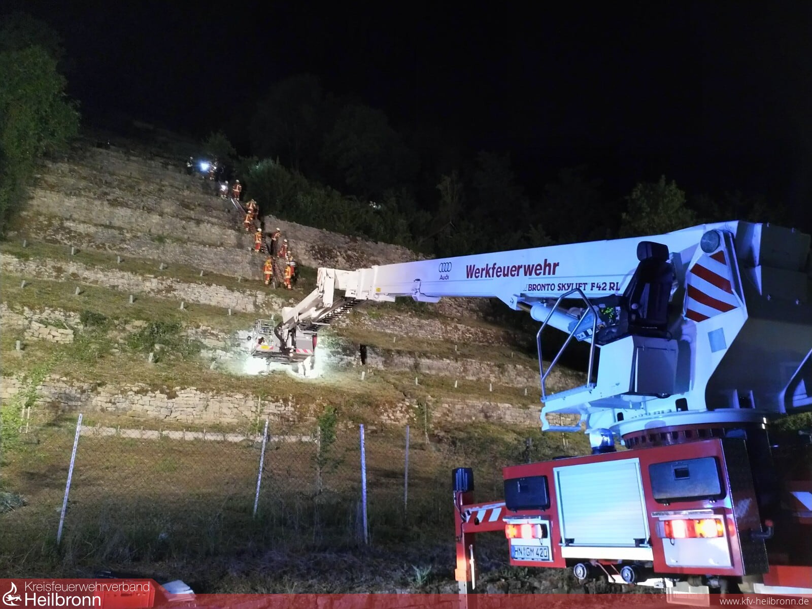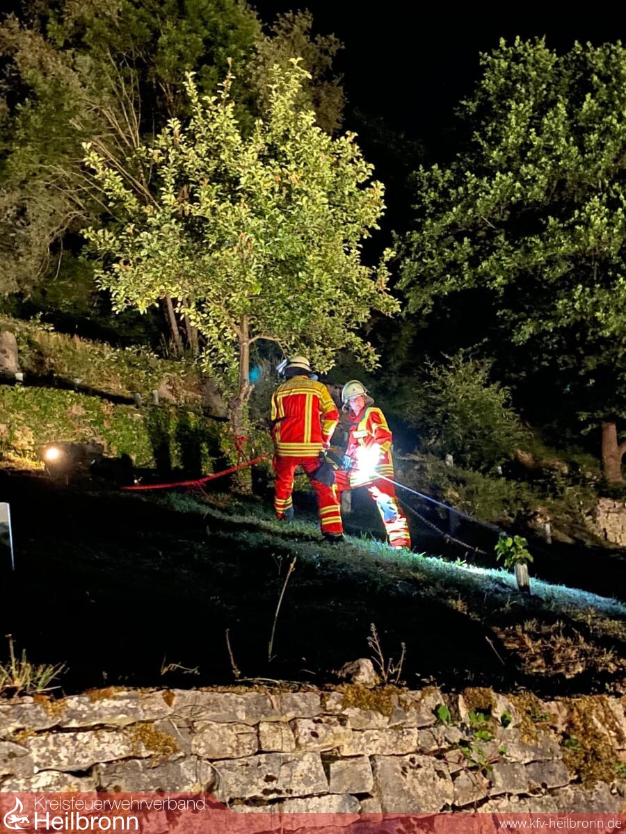 Die Polizei forderte die Freiwillige Feuerwehr Neudenau in der Nacht von Pfingssonntag auf -montag zur Unterstützung an. Es galt, eine in den Weinbergen zwischen Neudenau und Siglingen verstorbene Person zu bergen.