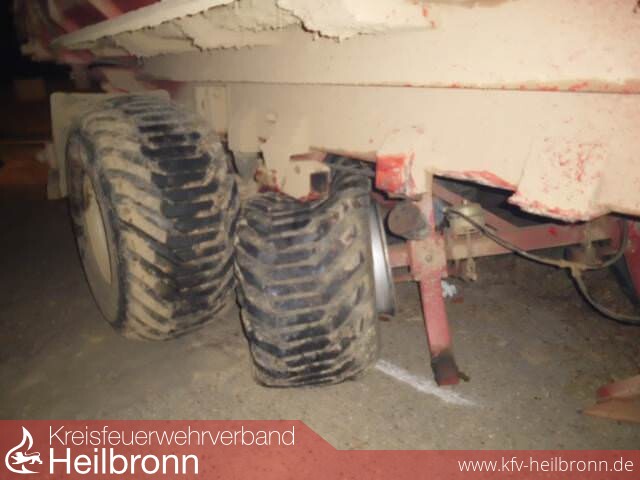 Ein PKW war auf der L 1096 von Untergriesheim kommenden unter den Anhänger eines aus dem Römerweg kommenden landwirtschaftlichen Fahrzeuges gefahren. Der Fahrer des total beschädigten Fahrzeuges, AUDI A 4, wurde mit einem Rettungswagens ins Krankenhaus gebracht.