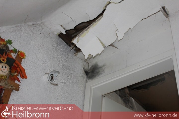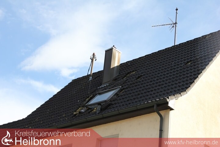 Der ins Dachgeschoss unter Atemschutz vorgehende Angriffstrupp konnte eine Rauchentwicklung aus einer erheblich in Mitleidenschaft gezogenen Elektoinstallation ausfindig machen. Von der mitalarmierten Feuerwehr Lauffen kamen zur Suche nach Brandstellen die Drehleiter und Wärmebildkamera zum Einsatz. Parallel wurde von weiteren Feuerwehrkräften und einem hinzugerufenen Elektriker sichergestellt, damit das Haus stromlos ist. Ein offenes Feuer konnte keines festgestellt werden.