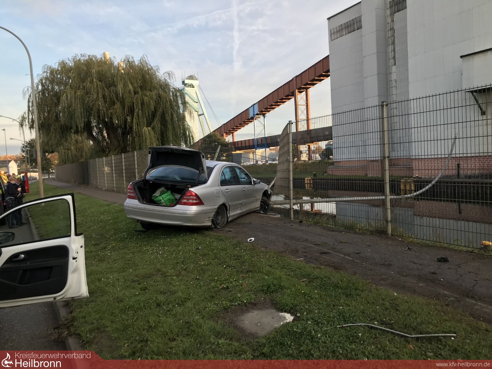 Eine Straßenlaterne sowie ein Metallzaun zum Salzhafen fielen einem Autofahrer am Sonntag um 07.37 Uhr in der Albertistraße zum Opfer. Der Fahrer hatte vermutlich etwas zu viel Alkohol getrunken und hierdurch die Kontrolle über sein Fahrzeug verloren. Glück hatte er dennoch, da der Zaun einen Abflug in den Neckar verhinderte. Die Feuerwehr zog den total zerstörten Mercedes sowie die Laterne zurück auf die Straße und sicherte den demolierten Zaun.