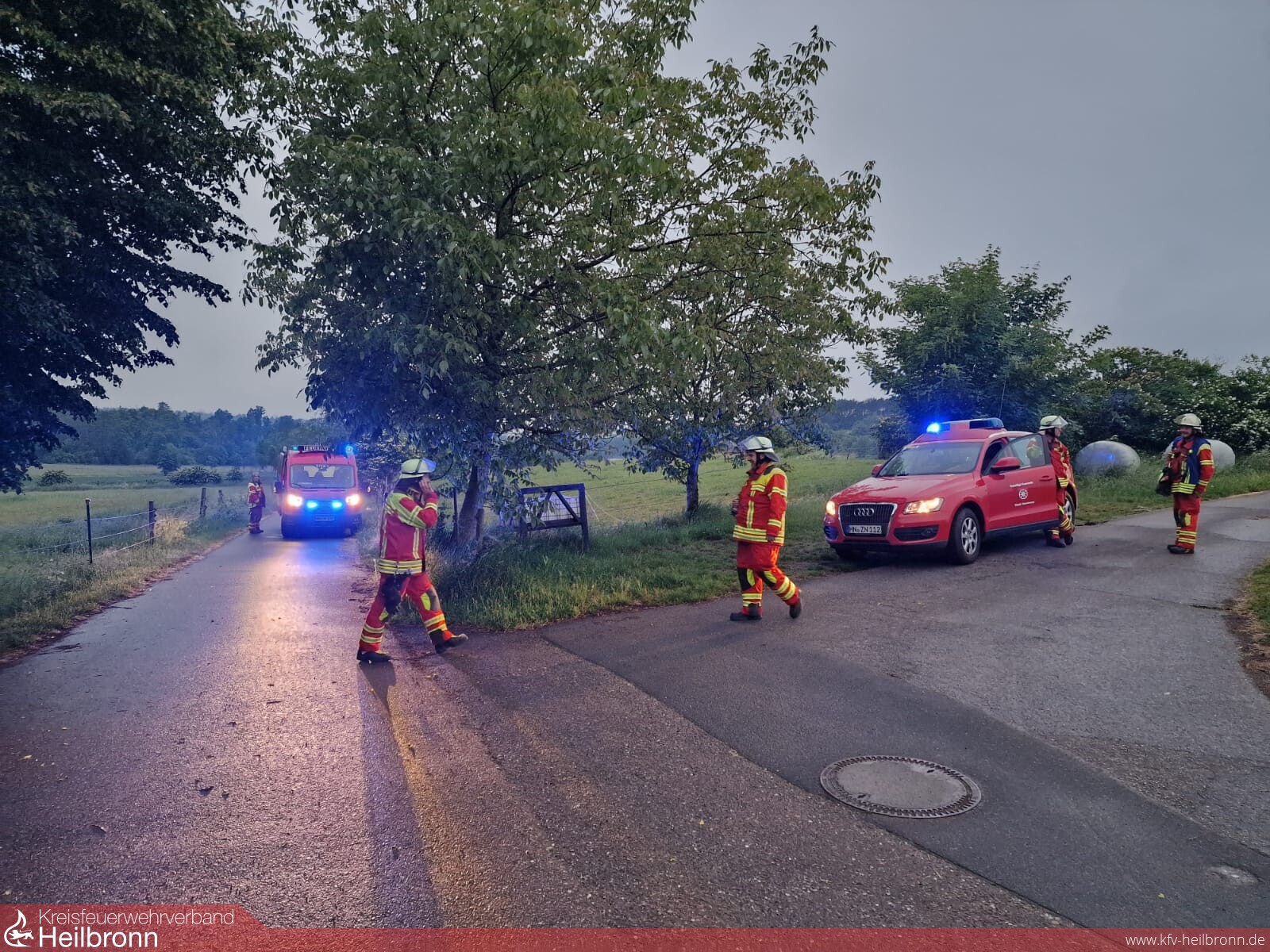 In unmittelbarer Umgebung wurde der Brandschutz durch das Tanklöschfahrzeug sichergestellt. Währenddessen erlosch das Feuer auch schon von selbst.