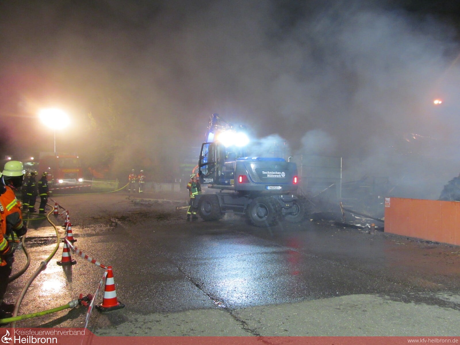 Beim Eintreffen der ersten Einsatzkräfte stand eine Strohlagerhalle im Vollbrand. Um eine Schädigung des angrenzenden Fermenters einer Biogasanlage zu verhindern wurde dieser sofort mittels Wasserwerfer und Wenderohren gekühlt. Gleichzeitig wurde die Brandbekämpfung eingeleitet. Zur Sicherung der Wasserversorgung während des Einsatzes legte der Wasserförderungszug der Feuerwehr Bad Rappenau zwei Leitungen mit einer Länge von jeweils einem Kilometer nach Bad Rappenau zum nächsten Hydranten. Zwischenzeitlich waren zusätzlich zu den eingesetzten Wenderohren und Wasserwerfern 5 C-Rohre im Einsatz, um das Feuer unter Kontrolle zu bekommen. Auch die Feuerwehr Bad Wimpfen, Neckarsulm und die Berufsfeuerwehr Heilbronn haben mit Sondergerät, wie dem Abrollbehälter Atemschutz und dem Gerätewagen Messtechnik unterstützt. Der Neckarsulmer Gerätewagen Messtechnik untersuchte die Luft hinsichtlich möglicher Schadstoffverunreinigungen. Jedoch konnten weder in direkter Umgebung des Brandes noch in den angrenzenden Wohnbebauungen Schadstoffemissionen festgestellt werden.