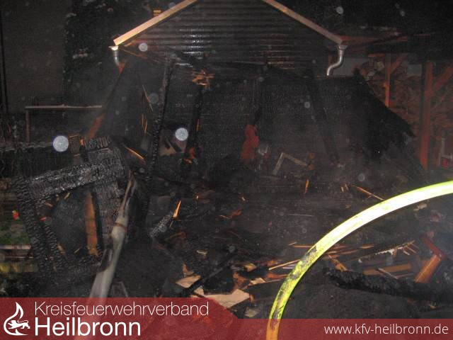 Diesmal wurde die Feuerwehr Bad Friedrichshall zum Brand einer Gartenghütte im Stadtteil Jagstfeld alarmiert. Beim Eintreffen stand die Hütte in Vollbrand. Unmittelbar neben der Hütte befand sich ein Hasenstall mit zwei Kaninchen und auf dem Nachbargrundstück ein weiteres Gartenhaus.