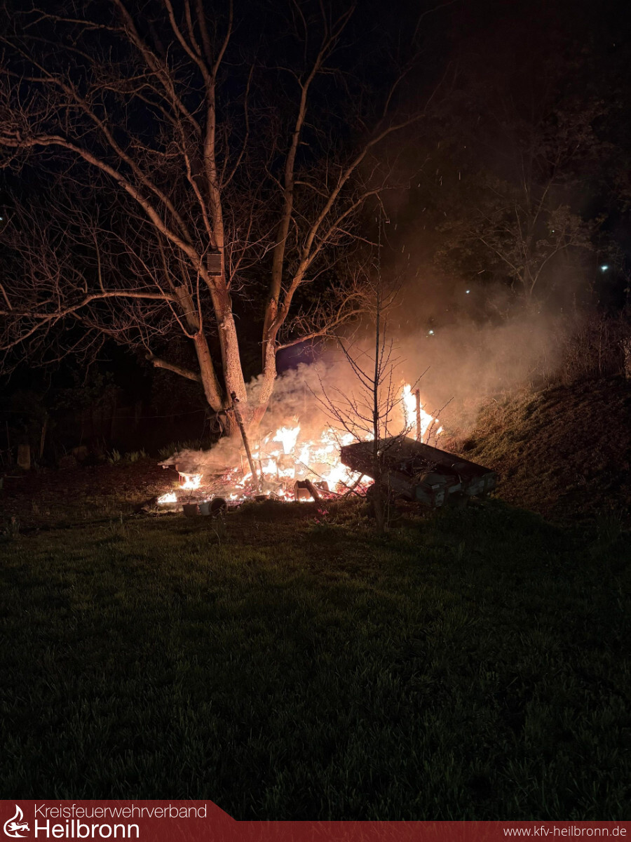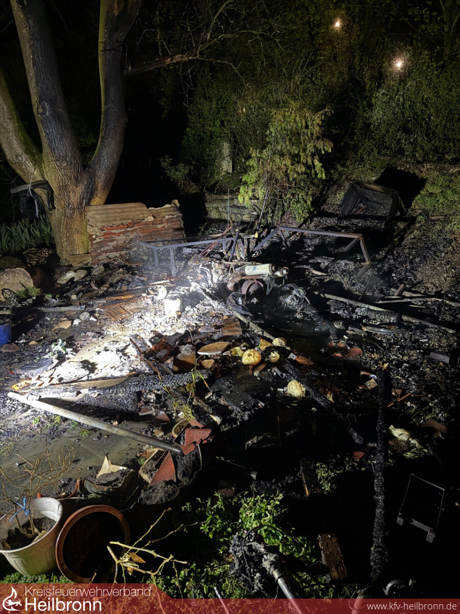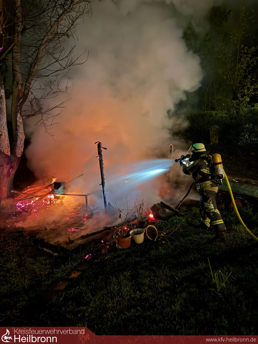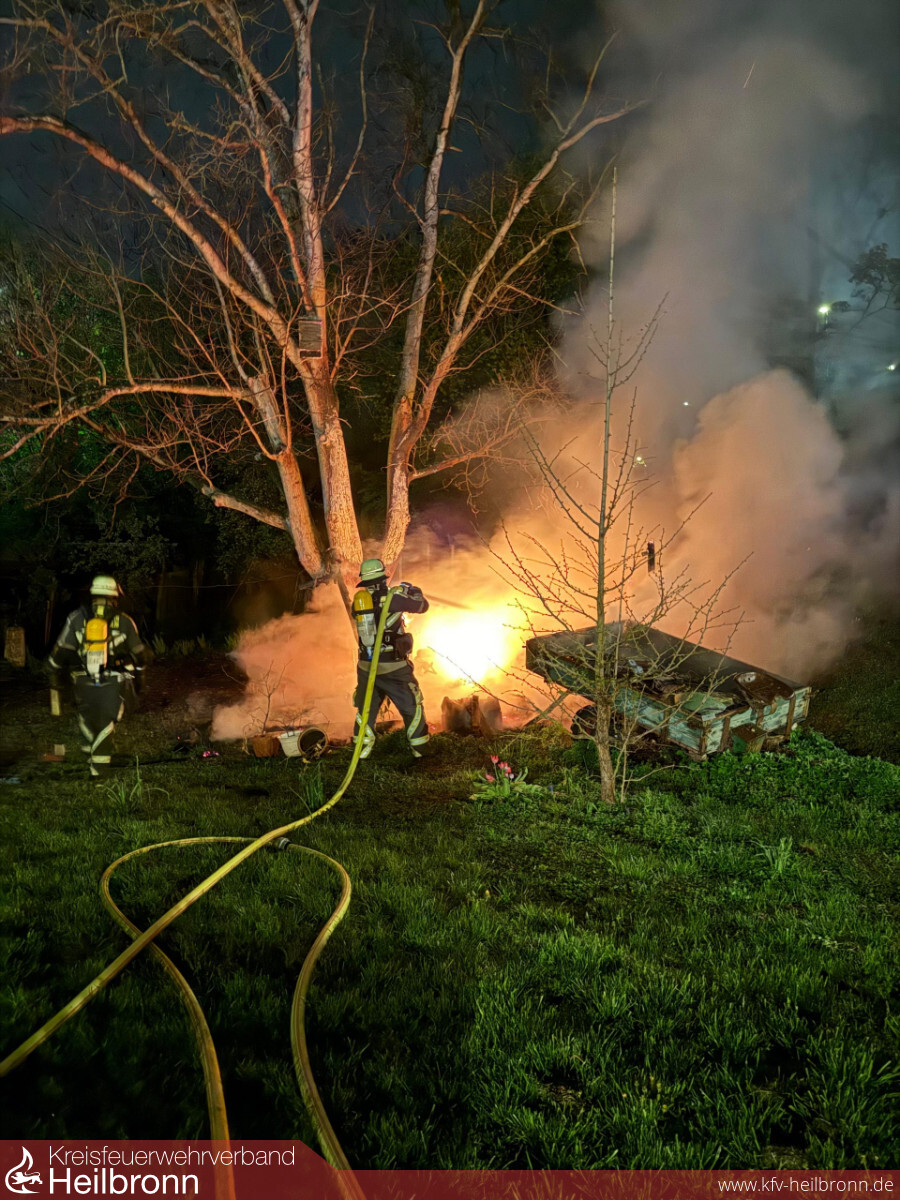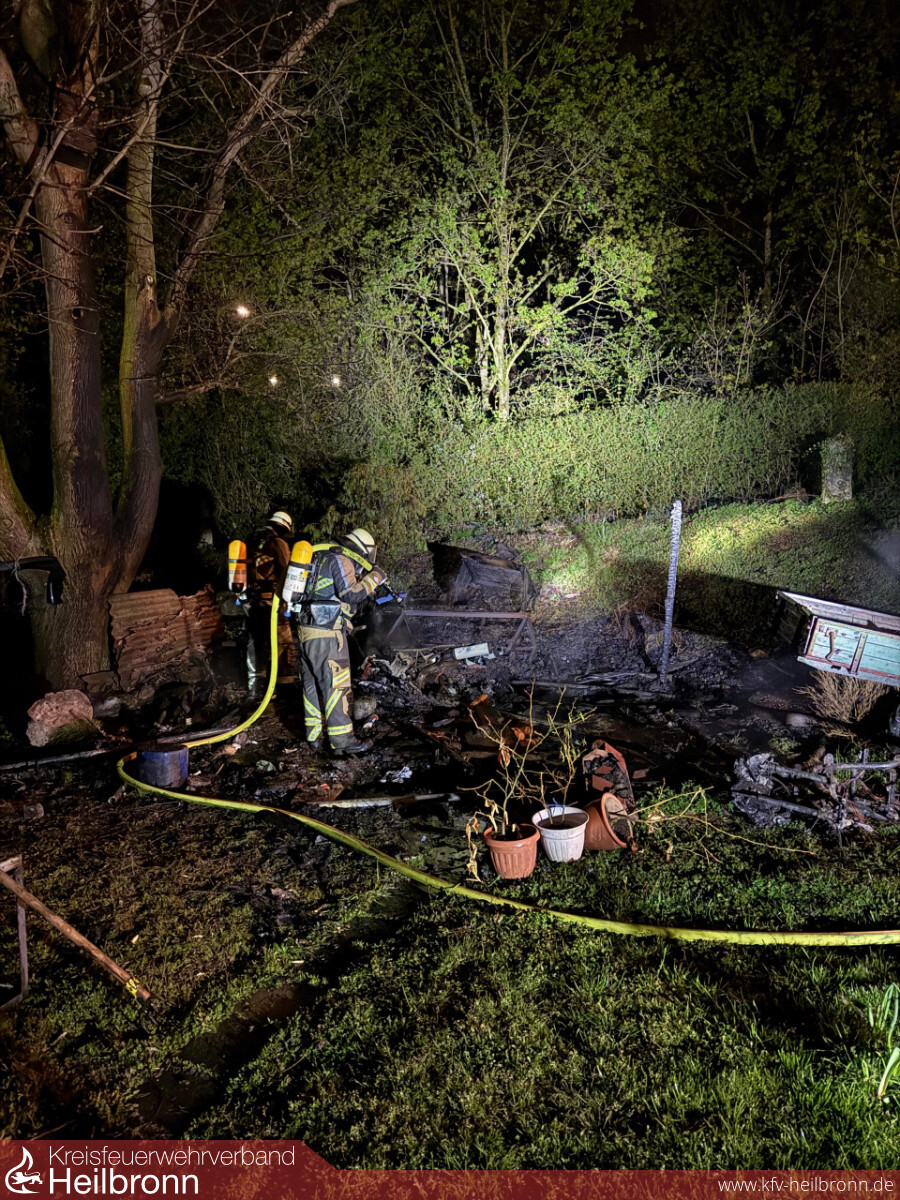 Am 12. April wurde die Feuerwehr Neckarsulm zu einem gemeldeten Gartenhüttenbrand im Neckarsulmer Stadtgebiet gerufen. Beim Eintreffen der ersten Einsatzkräfte stand das Objekt bereits im Vollbrand und war bereits vollständig eingestürzt.