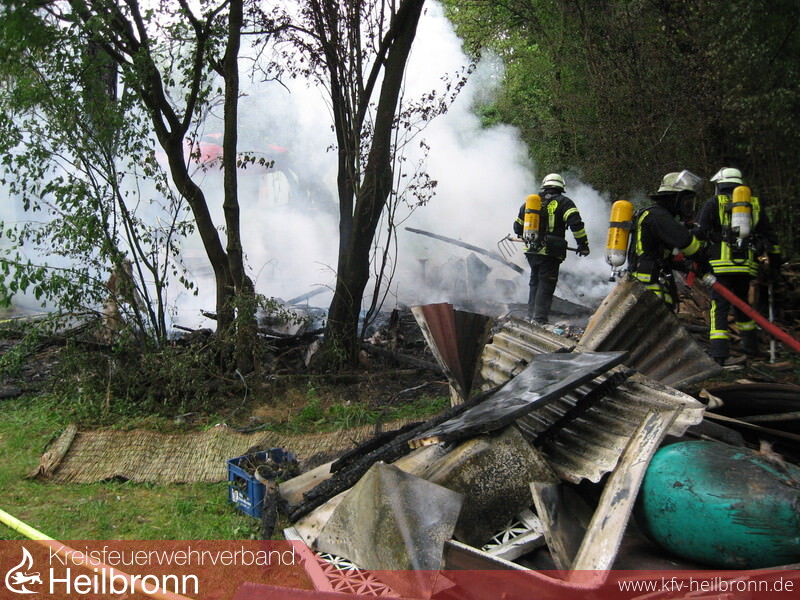 Um 10:56 Uhr am Dienstagvormittag wurde die Feuerwehr Neckarsulm zu einer brennenden Gartenhütte im Gewann Wilfensee alarmiert. Die ca. 5 auf 7m große Hütte brannte beim Eintreffen der Einsatzkräfte in voller Ausdehnung. Zwei Trupps unter PA löschten das Feuer mit zwei C-Rohren.