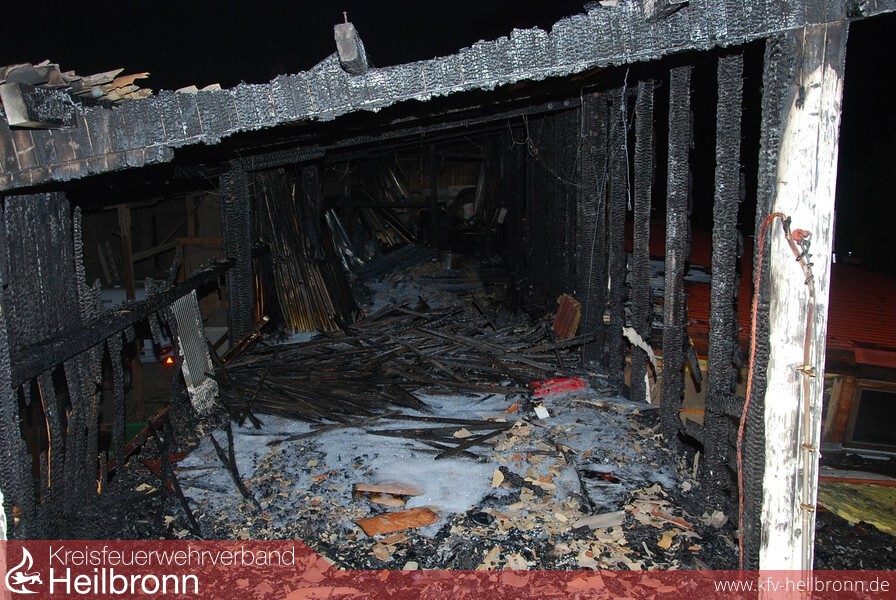 Der Nachbar eines landwirtschaftlichen Anwesens in der Straße Am Krautgarten bemerkte kurz vor Mitternacht ein Feuer in einer Gerätehalle und teilte dies über Notruf der Polizei mit. Die sofort verständigte Feuerwehr erschien mit insgesamt 75 Mann und 13 Fahrzeugen am Brandort und brachte das Feuer schnell unter Kontrolle. Wohngebäude waren nicht in Gefahr. Vier Bewohner eines Nachbarwohnhauses wurden für die Dauer der Löscharbeiten vorübergehend aus dem Gebäude evakuiert. Durch das Feuer wurden die Gerätehalle sowie untergestellte landwirtschaftliche Fahrzeuge in Mitleidenschaft gezogen. Weiterhin wurde durch den Brand die an die Gerätehalle angebaute Schreinerei beschädigt. Der Gebäudeschaden wird mit ca. 120 00 Euro, der Schaden am Inventar mit ca. 30 000 Euro angegeben. Die Brandursache ist bislang noch unklar. Am Einsatzort waren vorsorglich ein Rettungswagen, ein Notfallseelsorger sowie zwei Helfer vor Ort.