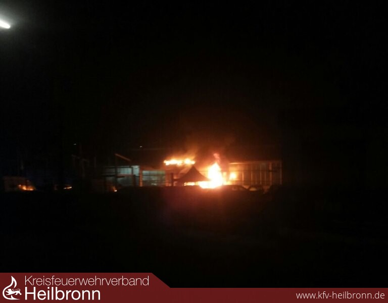 Um 22.18 Uhr wurden die Einsatzabteilungen (EA) Neudenau und Herbolzheim mit Stichwort „Wohnungsbrand“ in den Neudenauer Auweg alarmiert. Bereits auf der Anfahrt wurde, aufgrund des hellen Feuerscheins, die Alarmstufe erhöht. So wurden noch die EA Siglingen und die Feuerwehr Möckmühl mit der Drehleiter alarmiert.