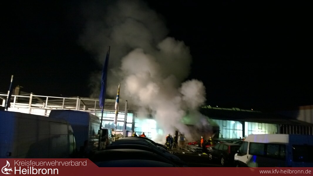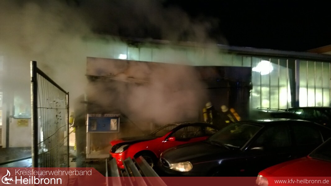 Bei Eintreffen der ersten Kräfte brannte ein Bürocontainer vor einem Autohaus in voller Ausdehung. Außerdem stand ein Pkw bereits in Vollbrand und das Feuer hatte im Traufbereich auf das Dach übergegriffen. Sofort wurde mit drei Trupps unter Atemschutz mit der Brandbekämpfung sowohl im Innen-, als auch im Außenangriff, begonnen. Innerhalb kurzer Zeit konnte das Feuer so unter Kontrolle gebracht werden.