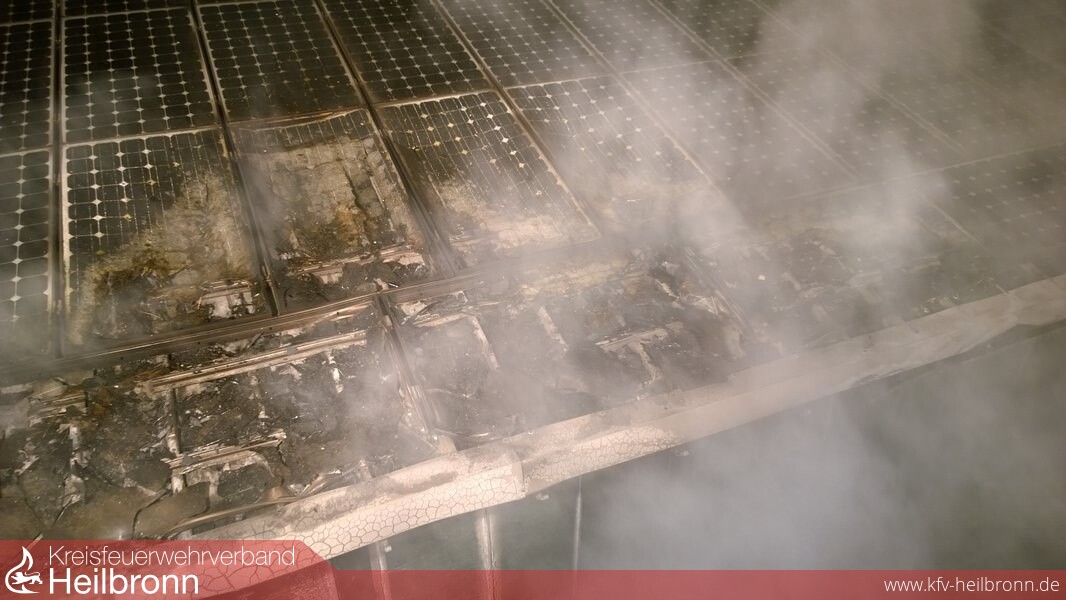 Danach wurde das Dach noch mit Hilfe der Drehleiter und der Wärmebildkamera kontrolliert. Auf dem Dach befindet sich eine Photovoltaikanlage.
