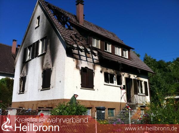 Am frühen Dienstagmorgen, 02.08.2011, gegen 03.30 Uhr, gehen bei der Feuerwehrleitstelle und der Notrufzentrale mehrere Anrufe über einen Brand in der Poststraße in Obersulm, Stadtteil Affaltrach, ein. Nachdem zunächst nicht genau bekannt war, was denn brennt, war durch weitere Mitteilungen schnell klar, dass es sich um ein Einfamilienhaus handelt. Ungeachtet des sofortigen Löscheinsatzes der Feuerwehr Obersulm nach Bekanntwerden des Brandes, wurde das Gebäude vollständig zerstört. Die 70jährige Bewohnerin des Hauses, die nach Bemerken des Brandes um Hilfe gerufen hatte, konnte von einem mutigen Nachbarn aus dem brennenden Haus ins Freie gerettet werden. Sie erlitt den ersten Erkenntnissen zufolge, schwere Brandverletzungen und eine Rauchgasvergiftung. Mittlerweile konnte der Brand gelöscht werden. Die schwer verletzte Frau und der ebenfalls verletzte Retter, werden derzeit im Krankenhaus behandelt.