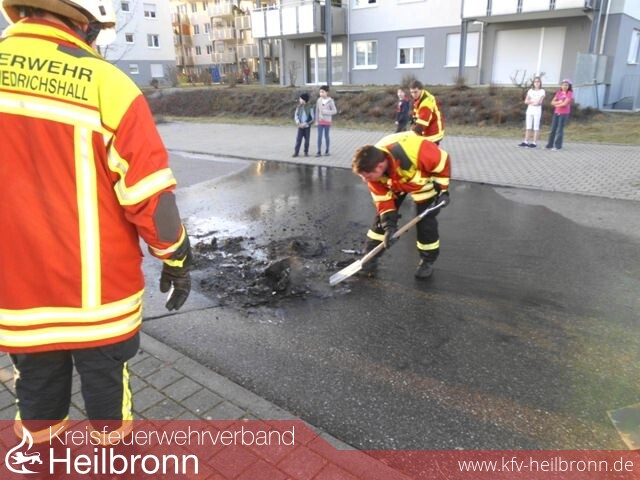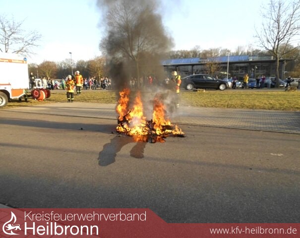 Beim Starten eines Motorrades gegenüber der Kocherwaldhalle in Jagstfeld geriet dieses in Brand.